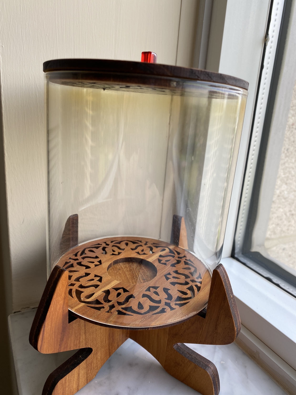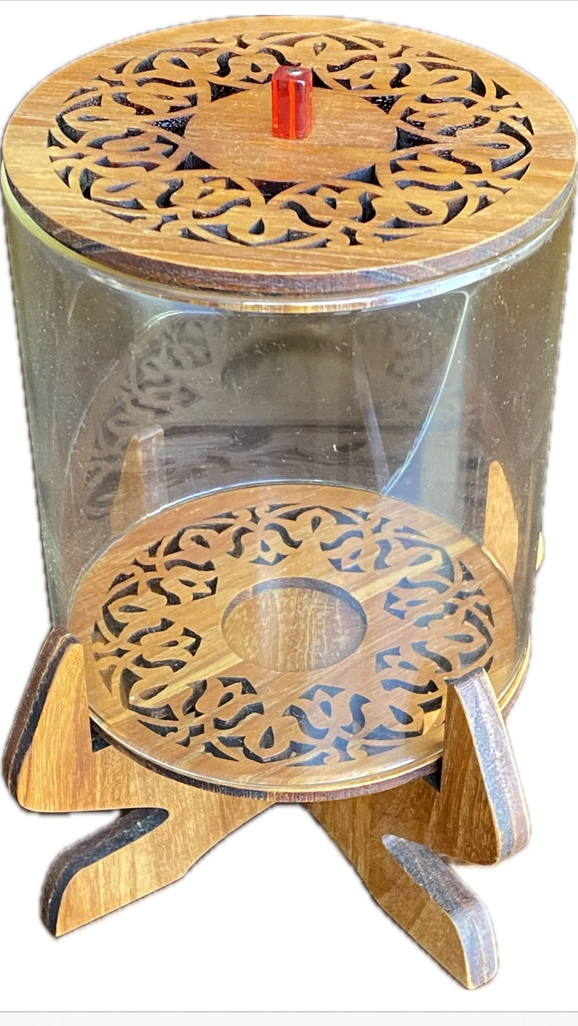 Wood and glass candle holder