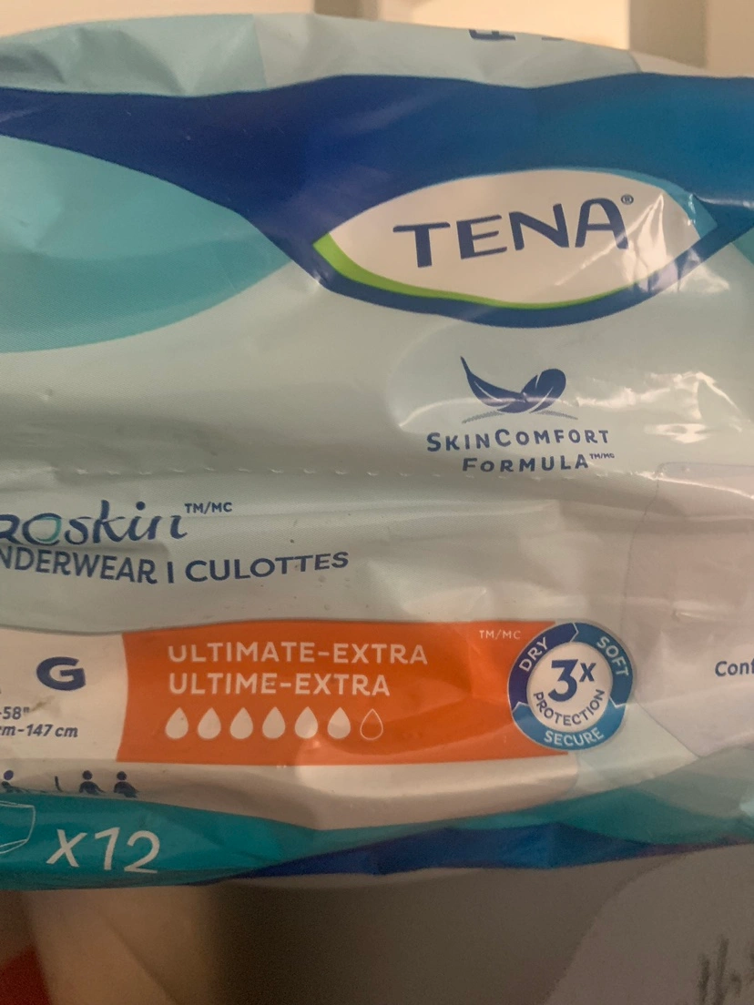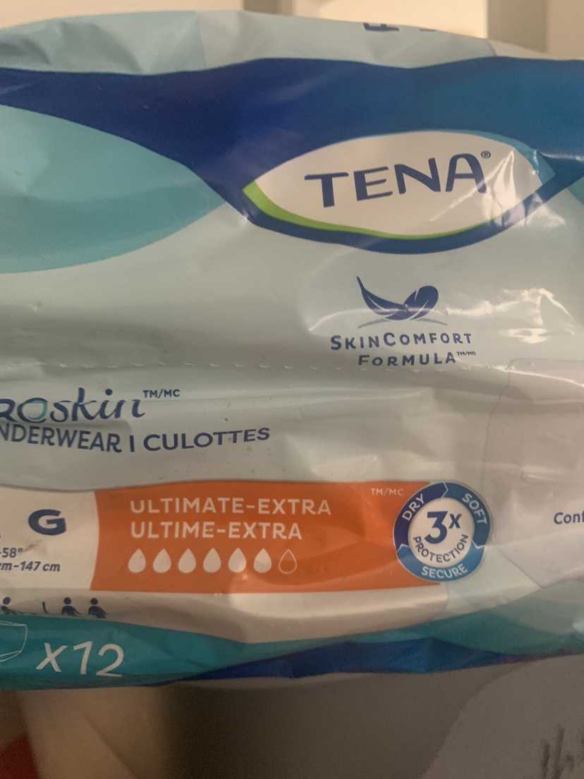 I have 4 packs tena bladder leak underwear. Size large. 12 in a pack.
