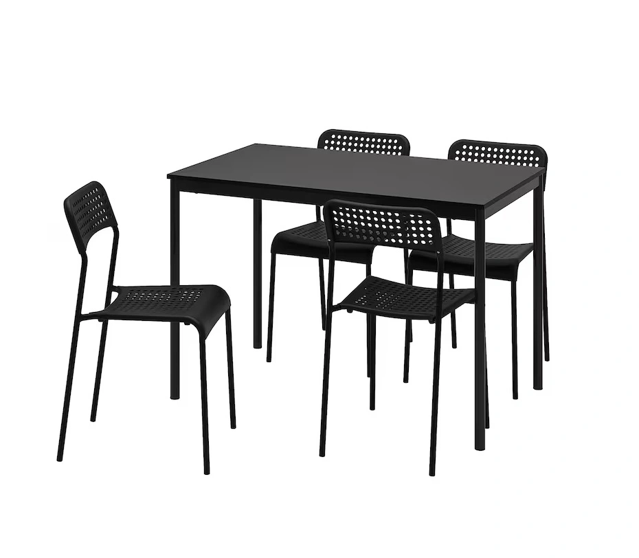 IKEA SANDSBERG Dining Table (Black) and two IKEA ADD Chairs (Black)