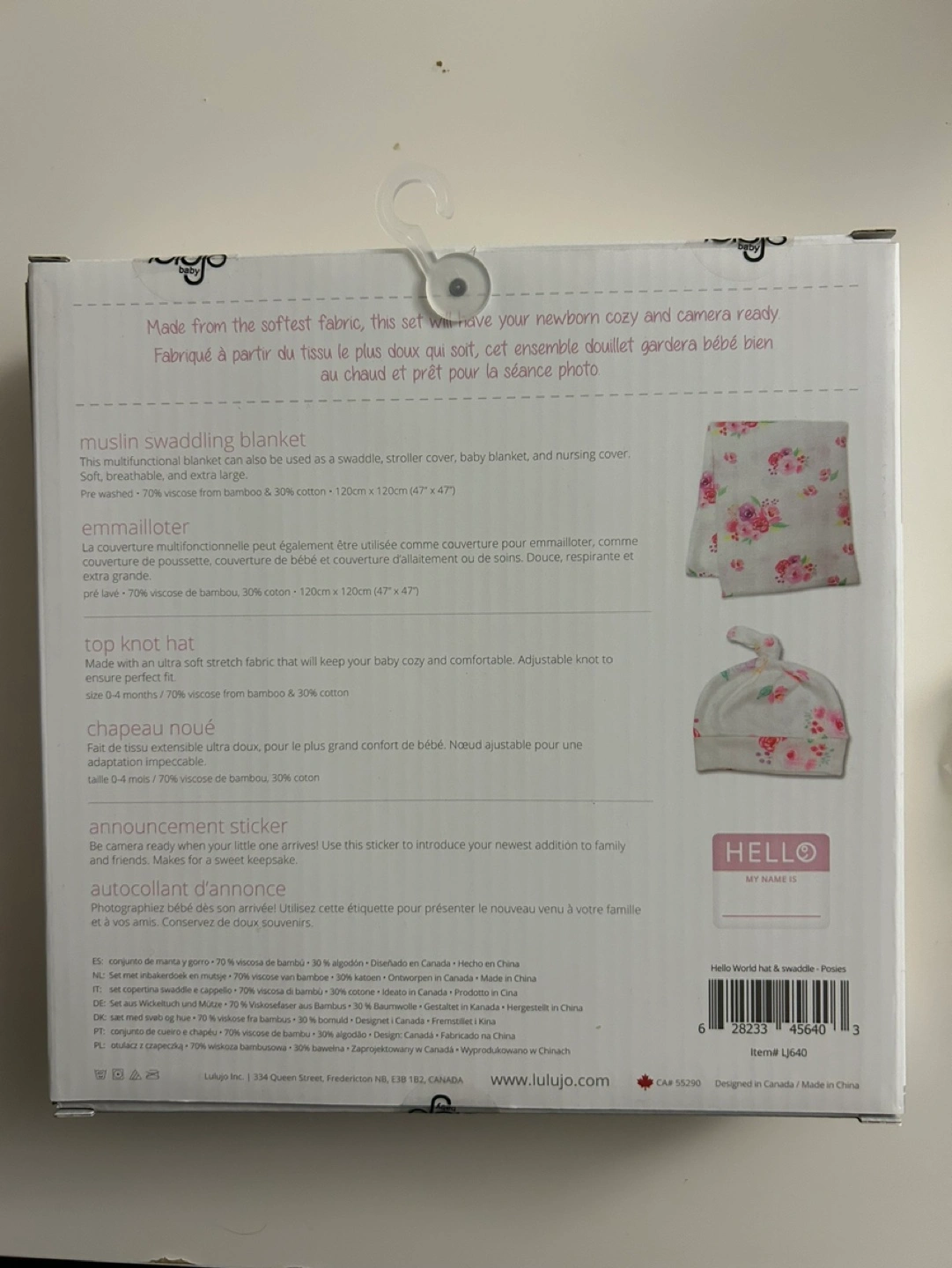 Brand New in box Lulujo Baby Hello World Newborn Bamboo Hat and Swaddle Blanket Set