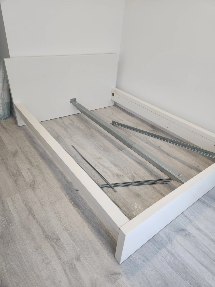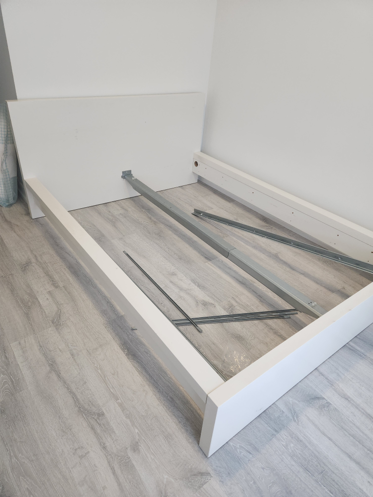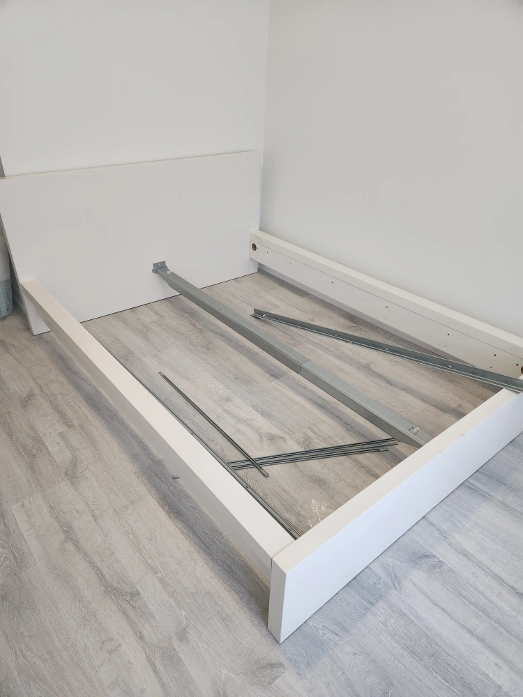 The ikea bed is in good condition with slats, but I wanted a clear white color. This one is creamy.