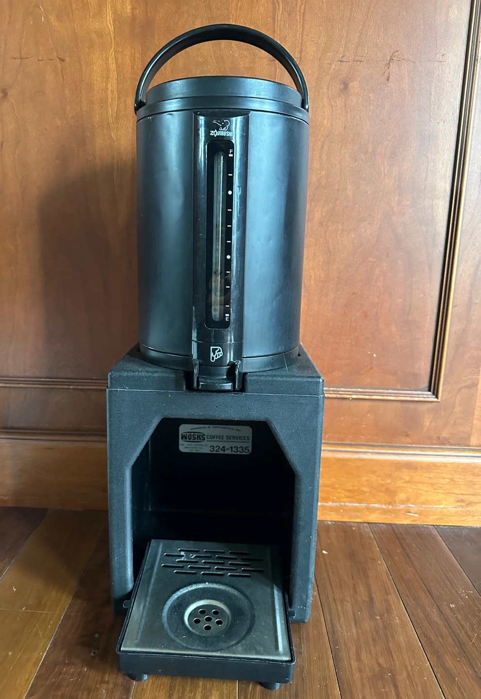 Zojirushi thermal serve with base great for workplace, catering or party. It keeps drink hot for many hours. Works great and clean.