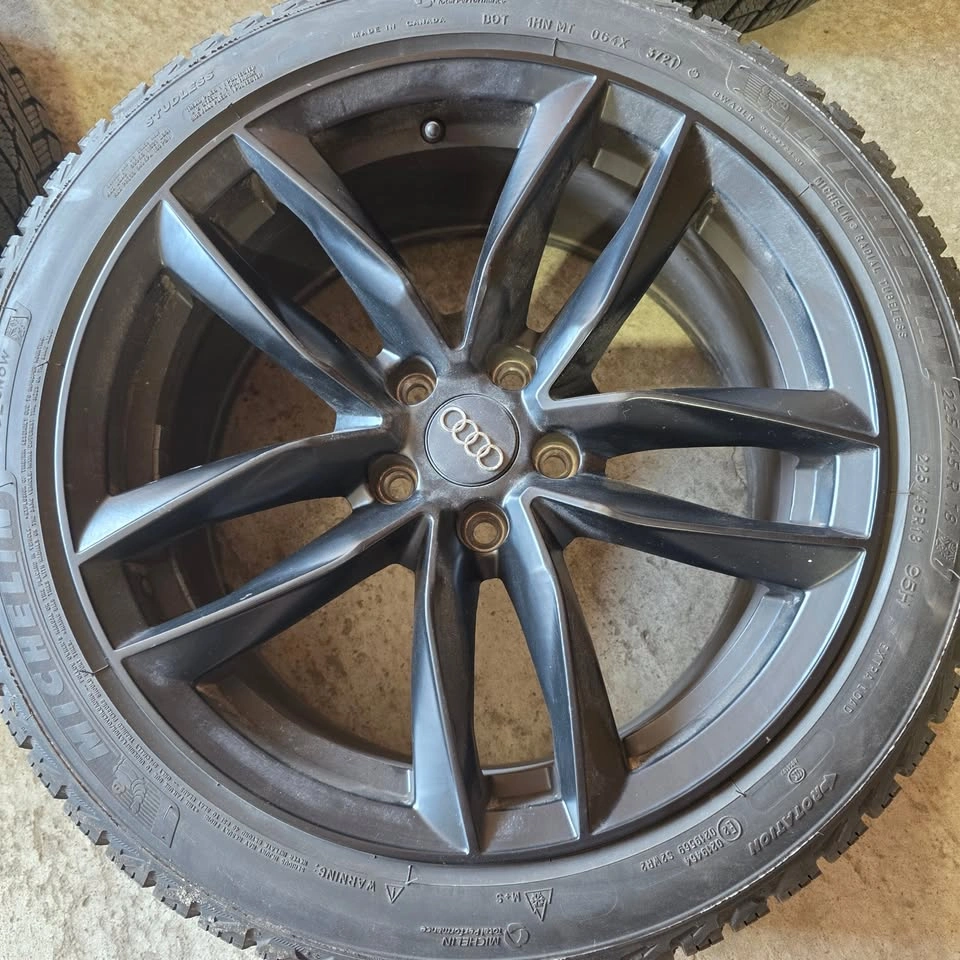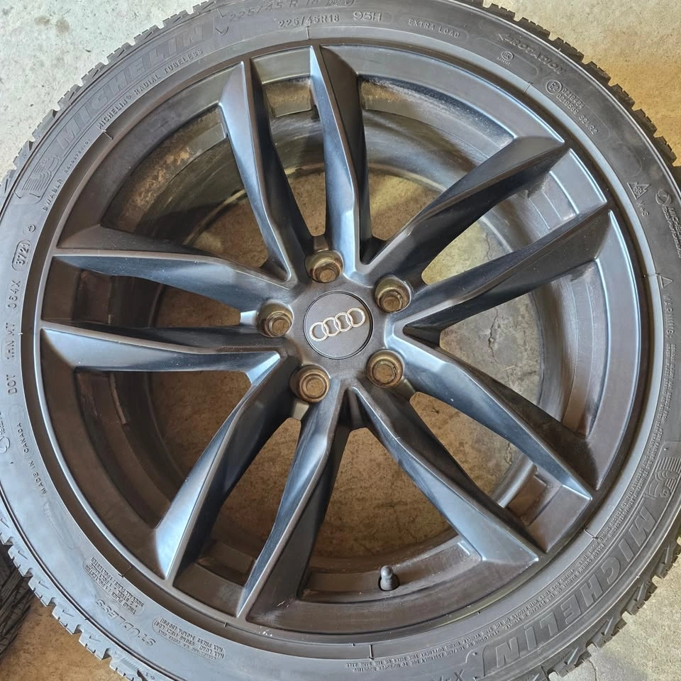 Selling four 18 inch Michelin winter tires with alloy rims for $1300. 95% of tread remaining. Tire size is 225/45/18. Rims have no curb rash, no bend or crack. The rim bolt pattern is 5x112. Tire size is 225/45/18, similar to size 245/40/18. Fit some of Mercedes Benz C300, BMW 3 series, 4 series, Audi A4, A5 or other cars. For reference only, the buyer verifies the fitment please.