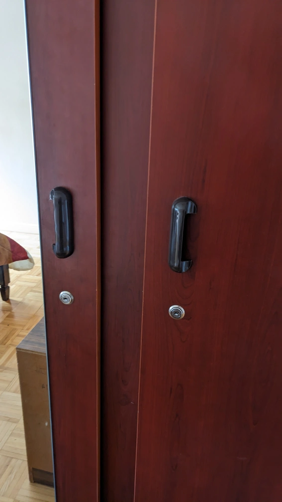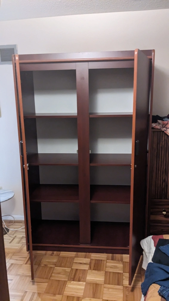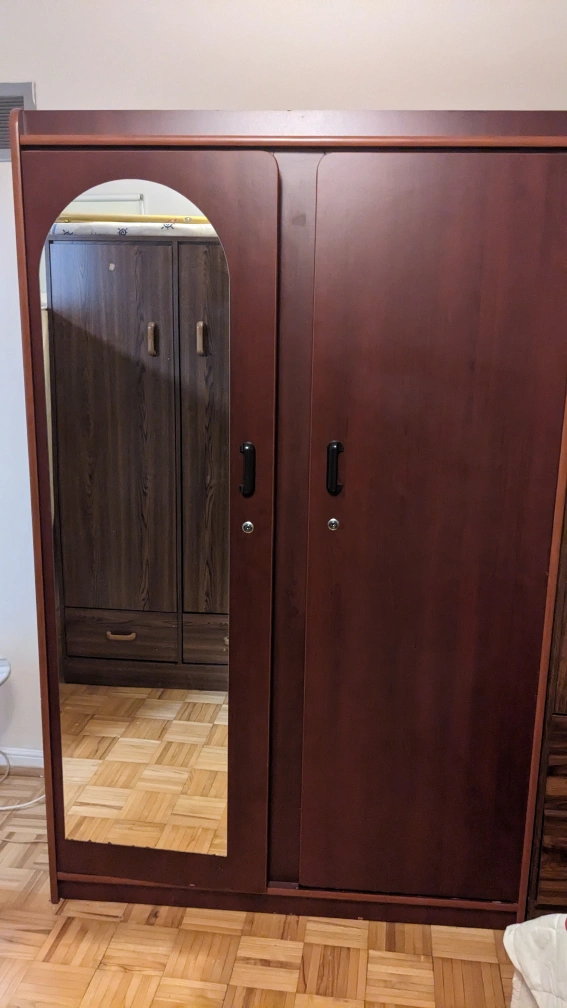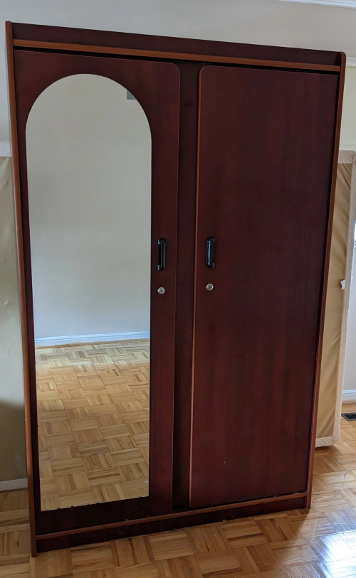 Absolutely gorgeous, great condition, large capacity for storage. Rich cherry colour and full length mirror view. Keys included for both doors. Retails for $799.