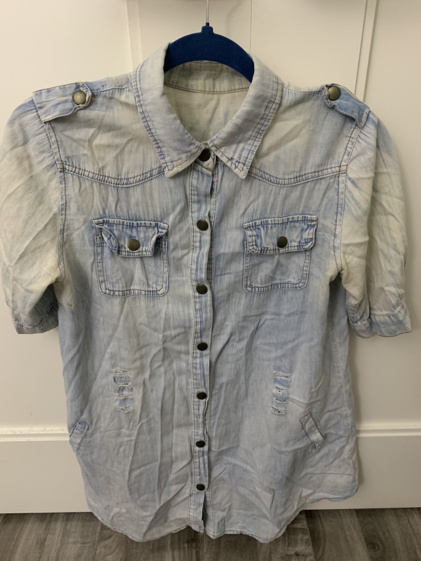 1 / 31 / 3Buy & SellWomen’s Denim BlouseWomen’s Denim Blouse$5Size S/M Worn a few times onlyConditionLike newWHERE TO MEETMeet nearbyView MapSELLERSamiraLiberty Village42143 reviews0 chats·0 favorites·47 viewsSEND CHAT TO SELLERHi Samira! I’m interested in your listing.Hi Samira! I’m interested in your listing.Get the Karrot app to chatSign In to chat