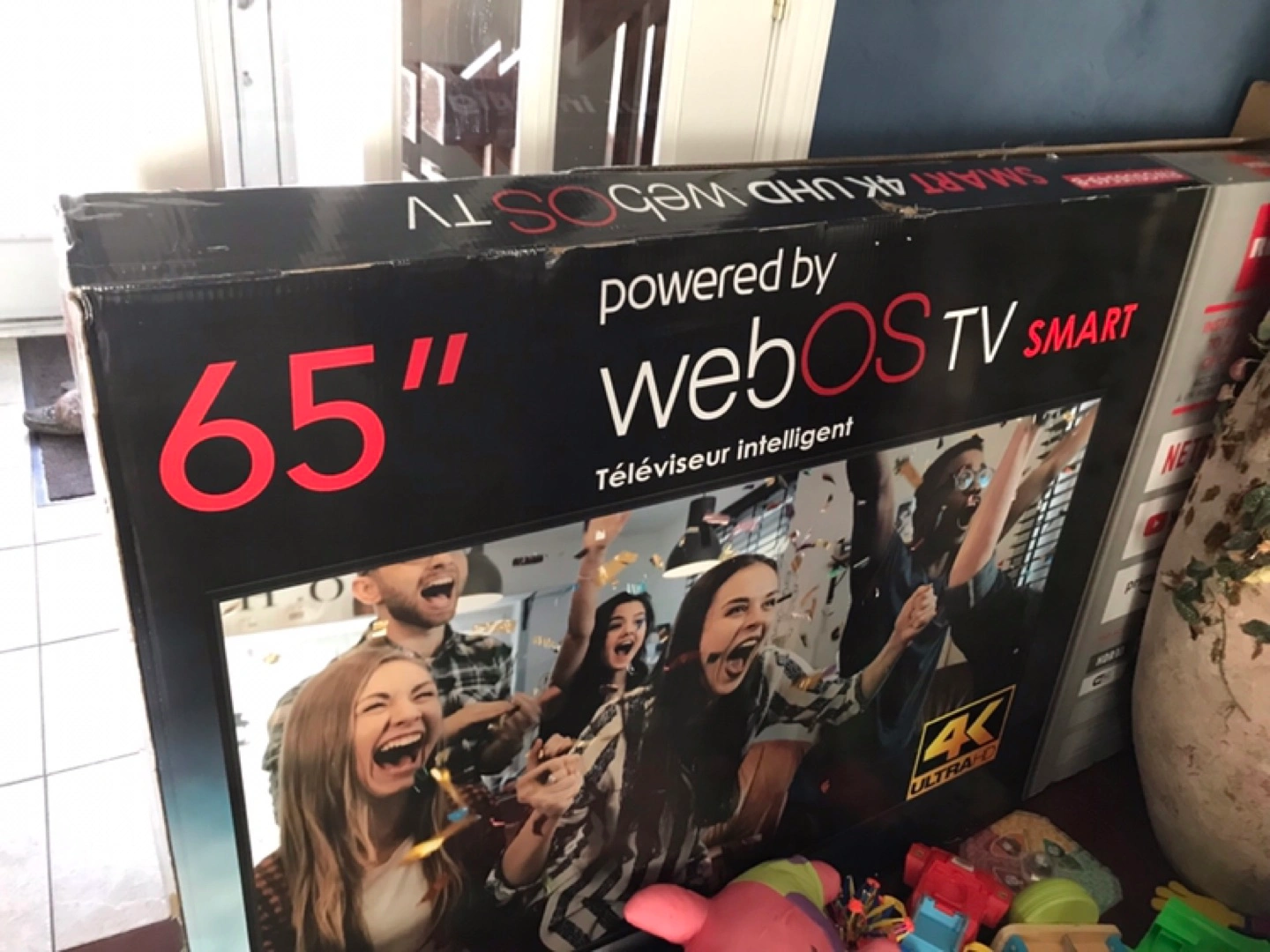 This TV was just purchased 3 months ago. Unfortunately it was damaged by a child. Screen inside is gone I think.. Selling it to someone who may need parts or pay to repair.. I paid 800.00 for it and this is really sad… 😭