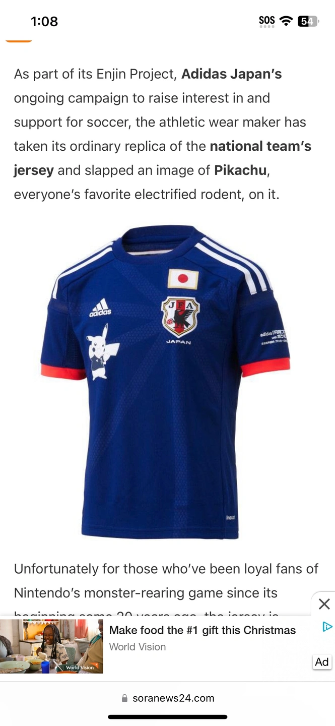 Collectable Pokemon Adidas Youth soccer shirt
