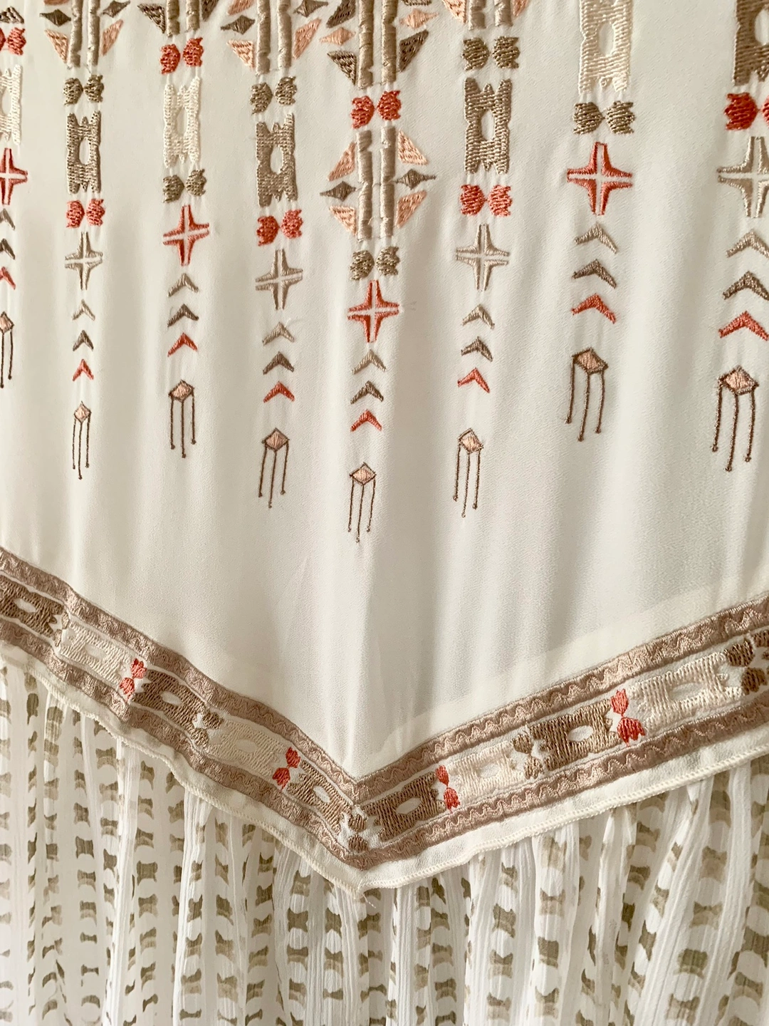 Beautiful embroidery adorns the chest and waist.