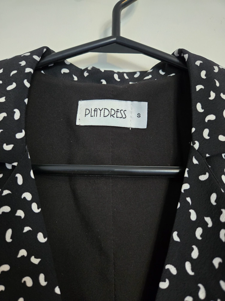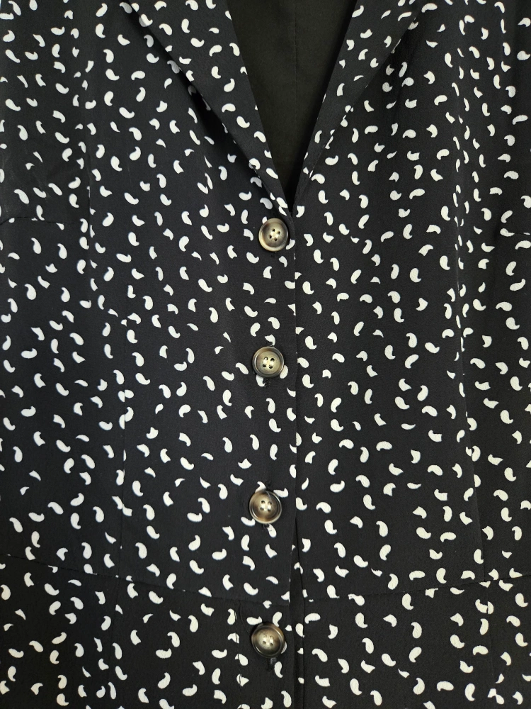 Purchased in Singapore, collar, button closures and B&W print. Super flattering.