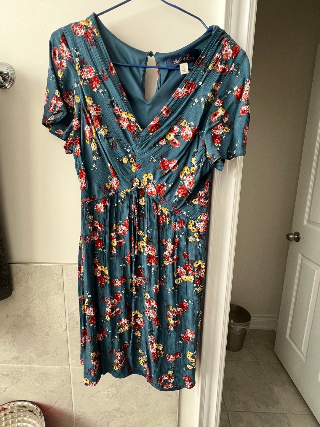 Short sleeved flowerd pattered dress. Size small (would fit as a medium).