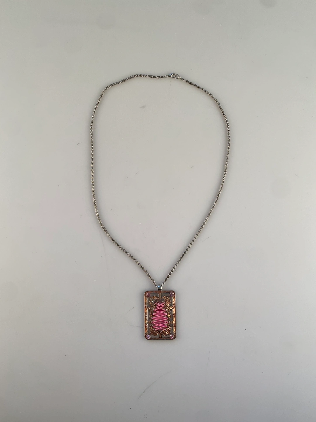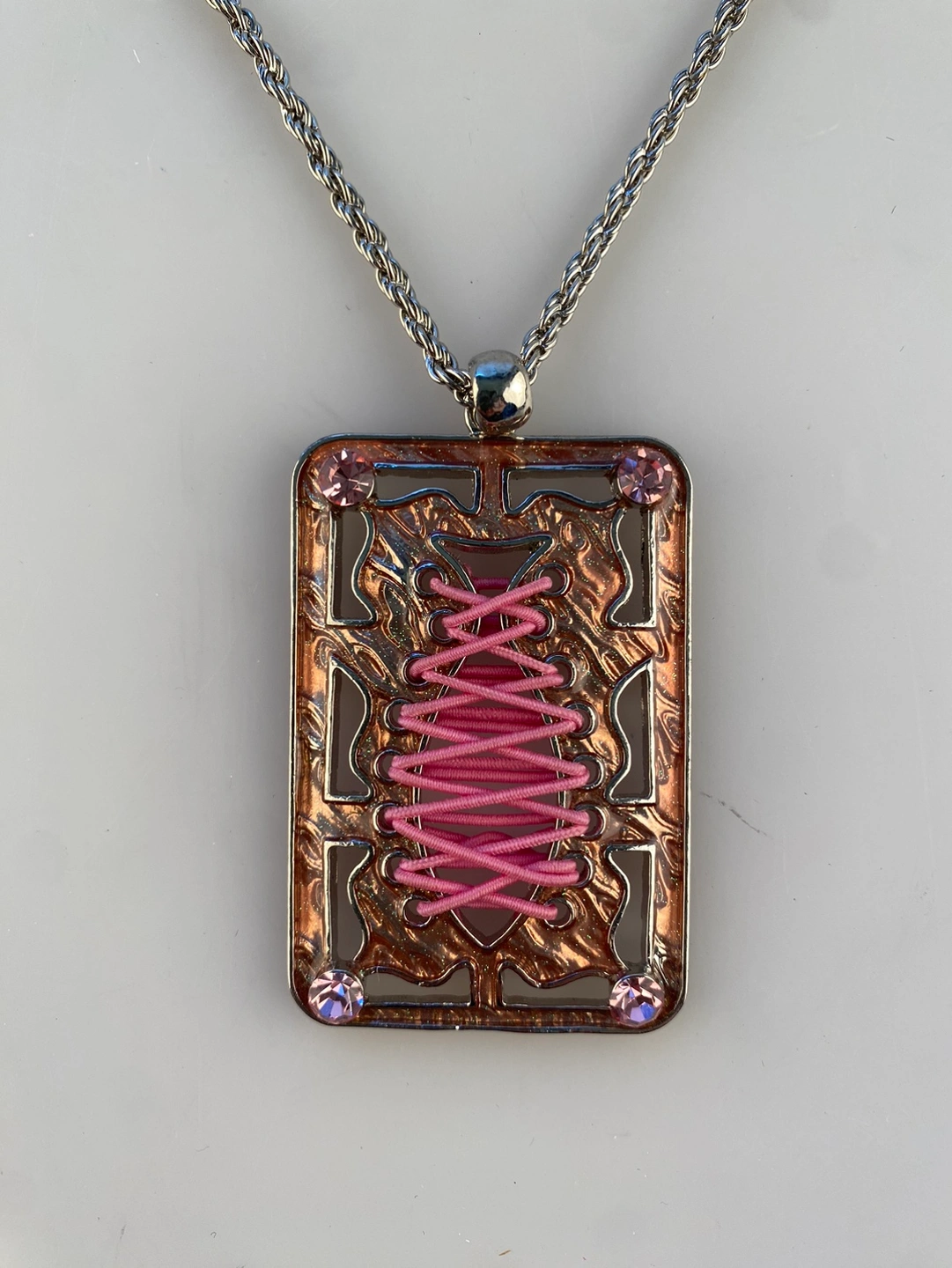 Silver Metal Pink Corset Pendant 15.5” Long Necklace