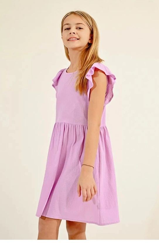 Molly Bracken Cotton Lilac Flounce Sleeve Dress Girls 10/12