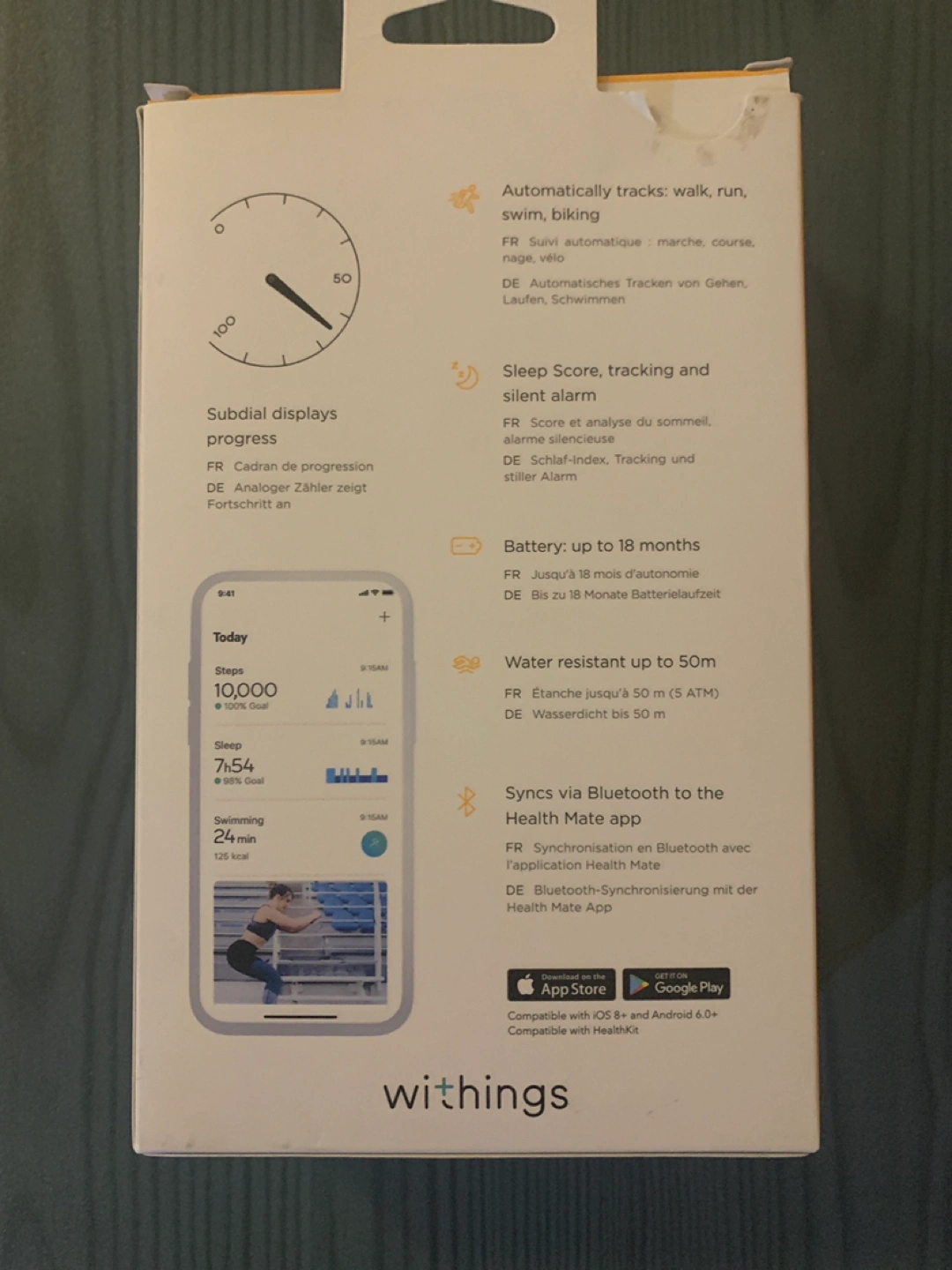 Activity tracking watch, never used, water resistant up to 50m, battery not-included