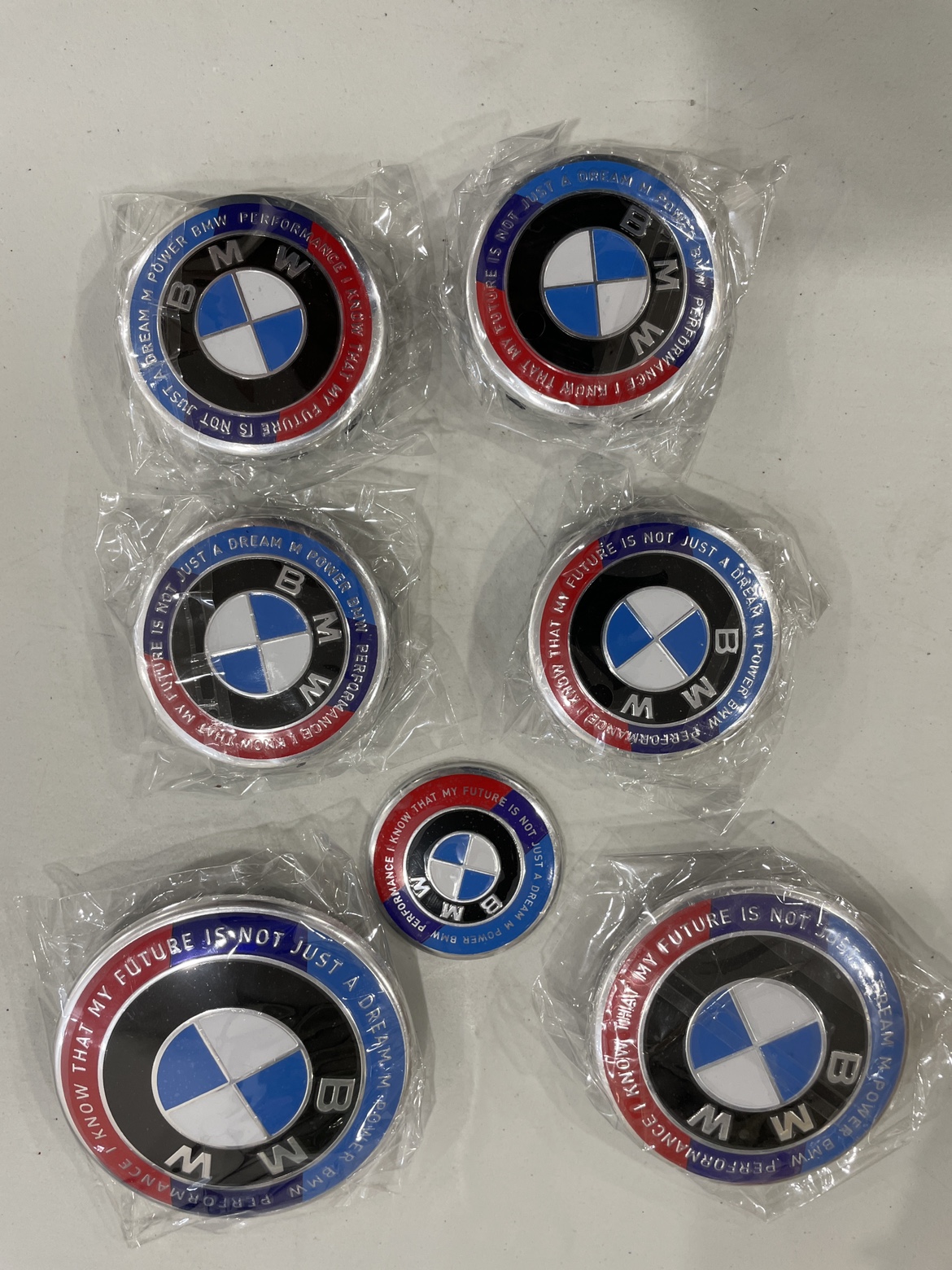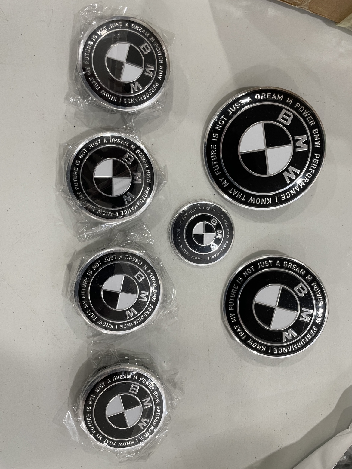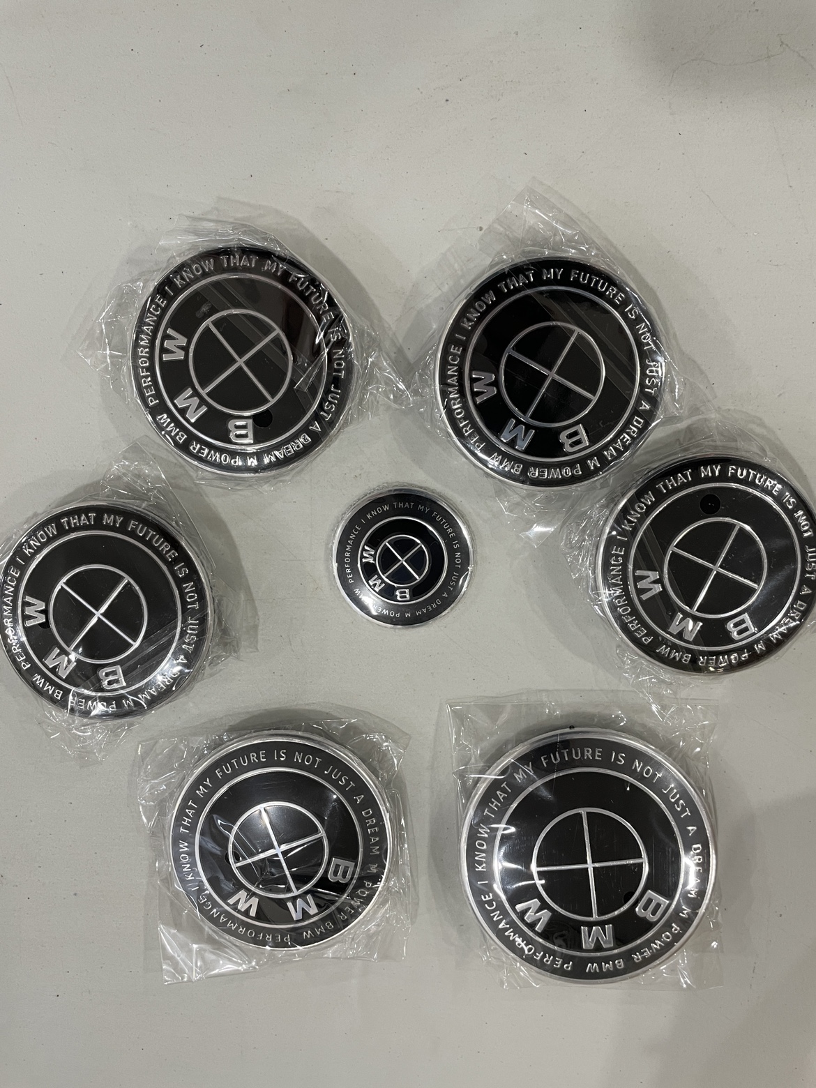 127Pcs Front 82mm Rear 82mm 74mm Steering Wheel Emblem Caps 68mm 54mm For BMW Charcoal Fiber Same size as original Price is firm and is discounted already and I won’t go any lower. Thanks Pickup only in Markham. 16th&mccowan