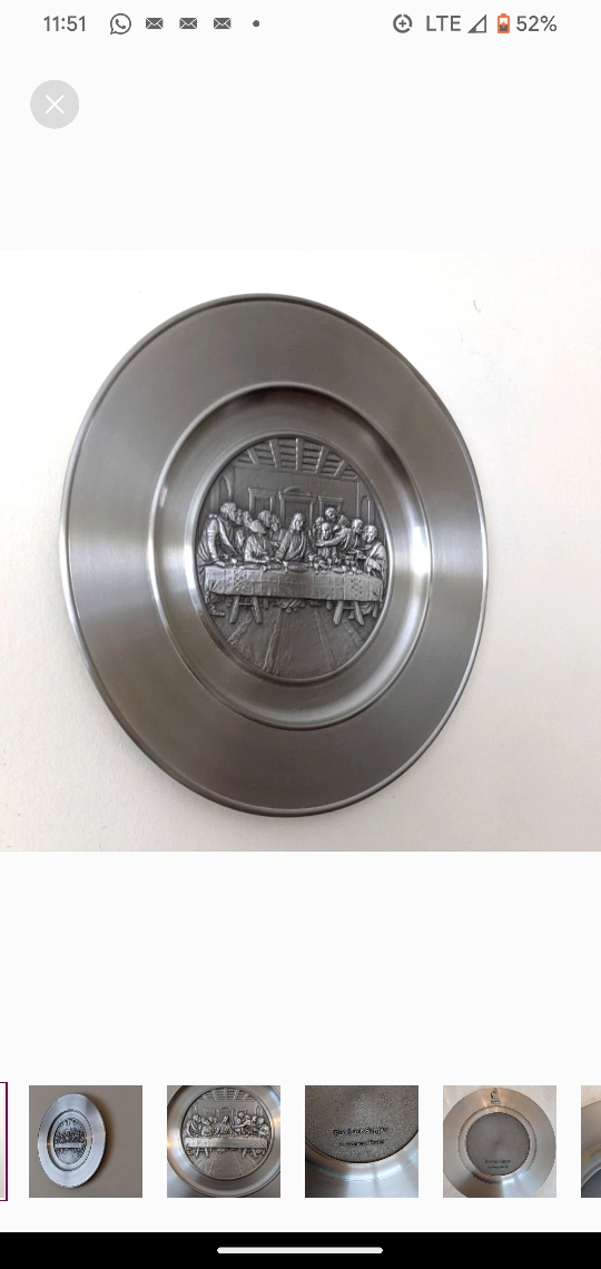 Pewter Collectable Plate of "The Last Supper"