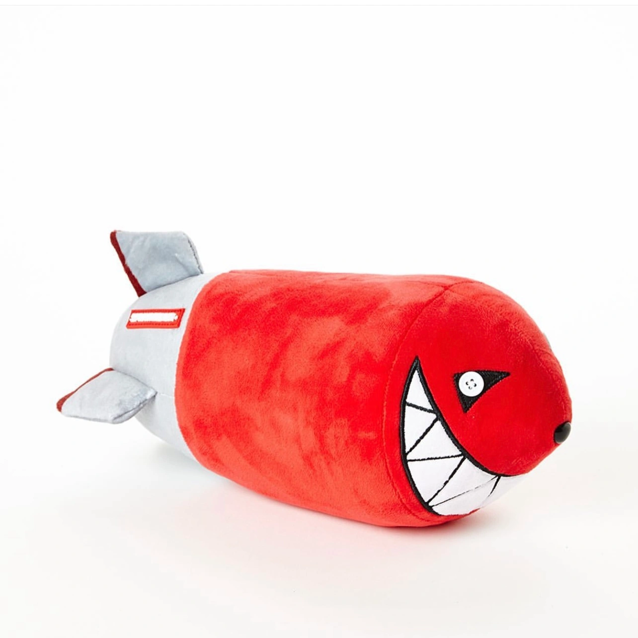 Dimensions: 18" x 6" x 11.5" • Front zipper pocket • Side pockets • Zippered Stash pocket • Ergonomic mesh back padding • Adjustable Straps for custom sizing • Nylon Zippers with Metal Hardware • Metal "Sprayground Authentic" badge • Slide through back sleeve connects to Carry on luggage to free your hands • comes with a plush toy rocket launcher