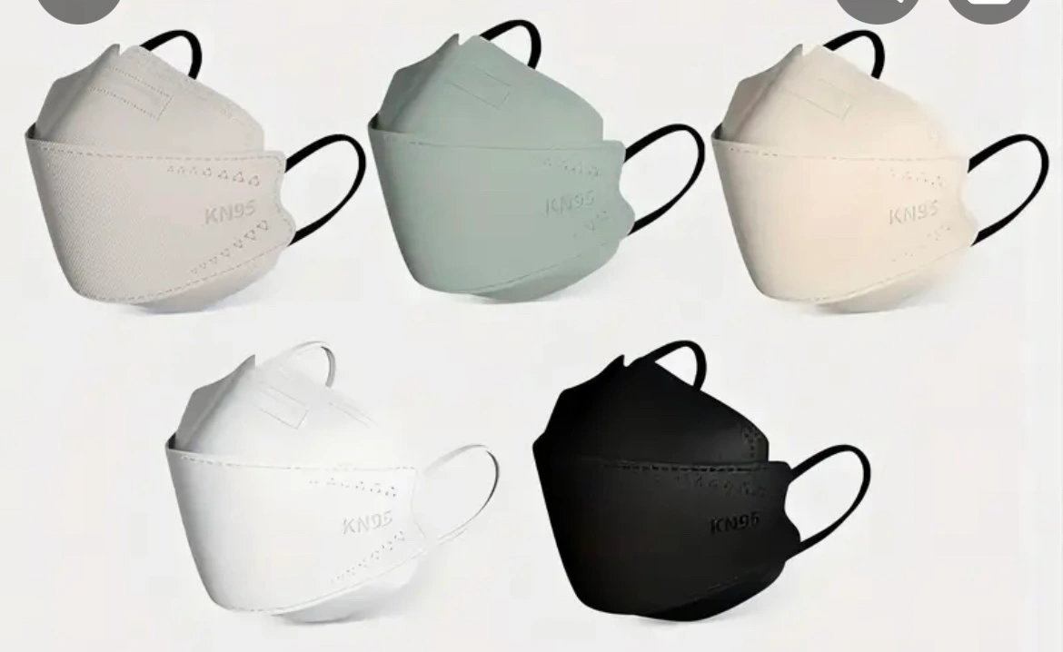 These masks are individually wrapped in five colours. Newly delivered. $5 per bag consisting of 10 face masks.