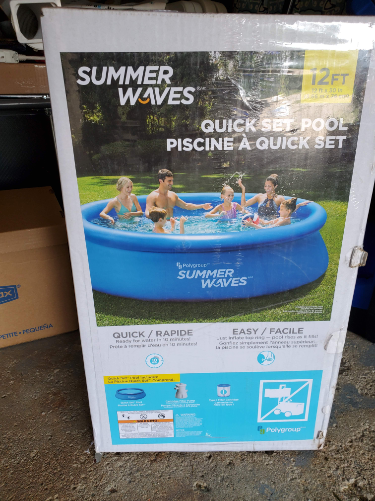 1 / 21 / 2Buy & SellSummer waves quick set swimming pool (12 ft)Summer waves quick set swimming pool (12 ft)$60A brand new Summer waves quick set pool (12 ft). In original box, never opened. Asking $60 oboConditionNewWHERE TO MEETCheck LocationView MapSELLERJennieThornhill311 review1 chatsΒ·0 favoritesΒ·17 viewsSEND CHAT TO SELLERHi Jennie! Iβm interested in your listing.Hi Jennie! Iβm interested in your listing.Get the Karrot app to chatSign In to chat
