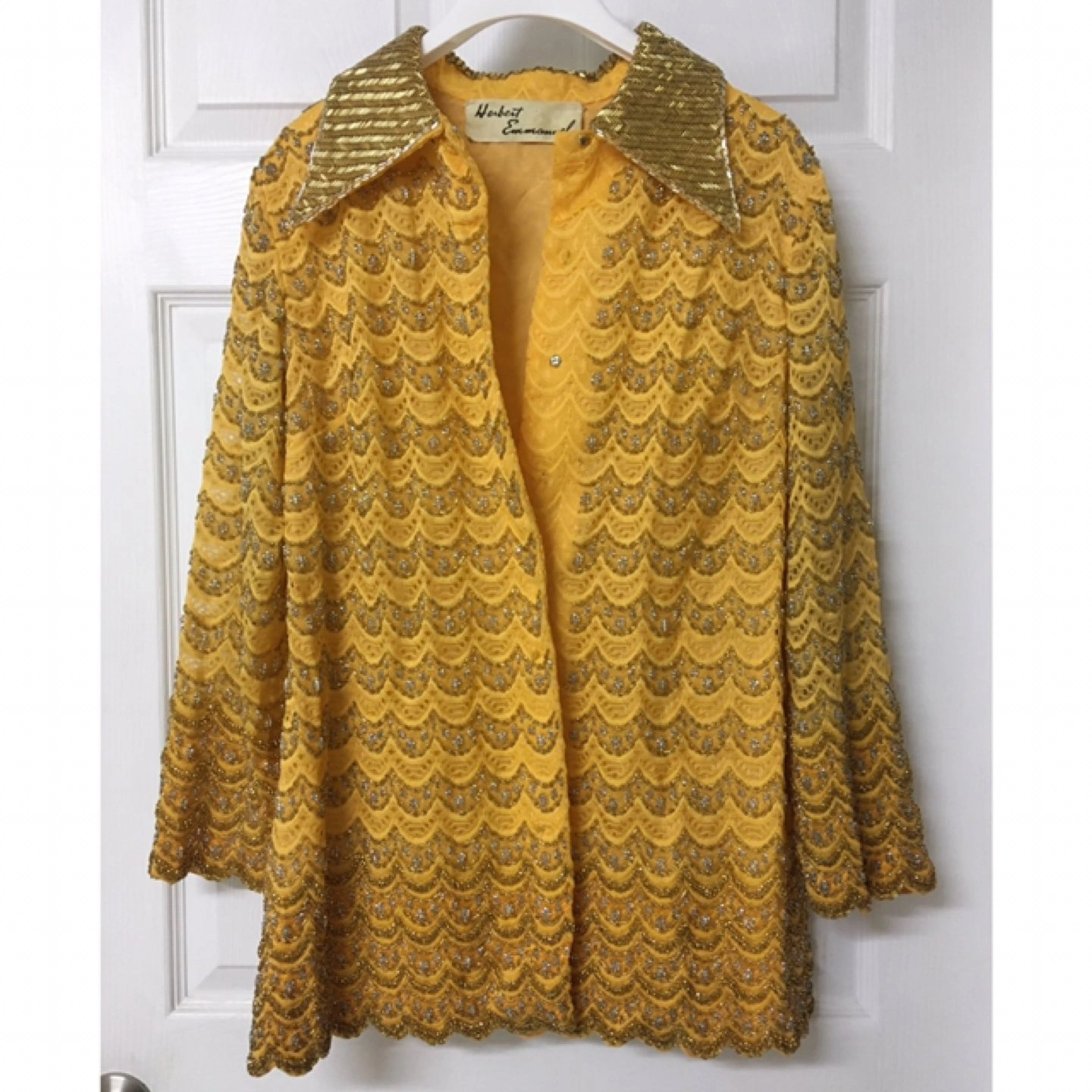 Vintage Ladies Herbert Emmanuel Canary Yellow Beaded Jacket.