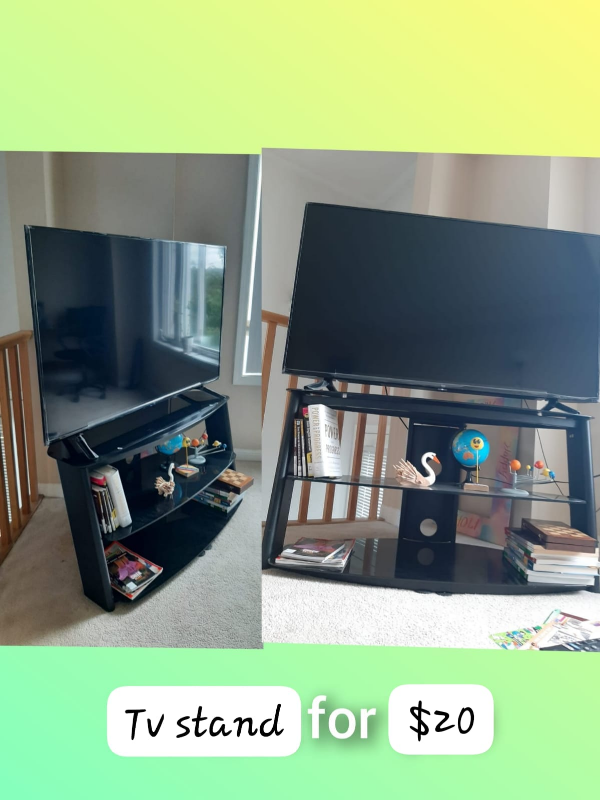1 / 11 / 1Buy & SellTV standTV stand$20It is a very fansy TV stand Black color. It is pretty heavy, a 55inch TV can be fit on this stand without any problem.ConditionLike newWHERE TO MEET1 Beckenrose CtView MapSELLERSwapnaBram W745 reviews3 chats·0 favorites·47 viewsSEND CHAT TO SELLERHi Swapna! I’m interested in your listing.Hi Swapna! I’m interested in your listing.Get the Karrot app to chatSign In to chat
