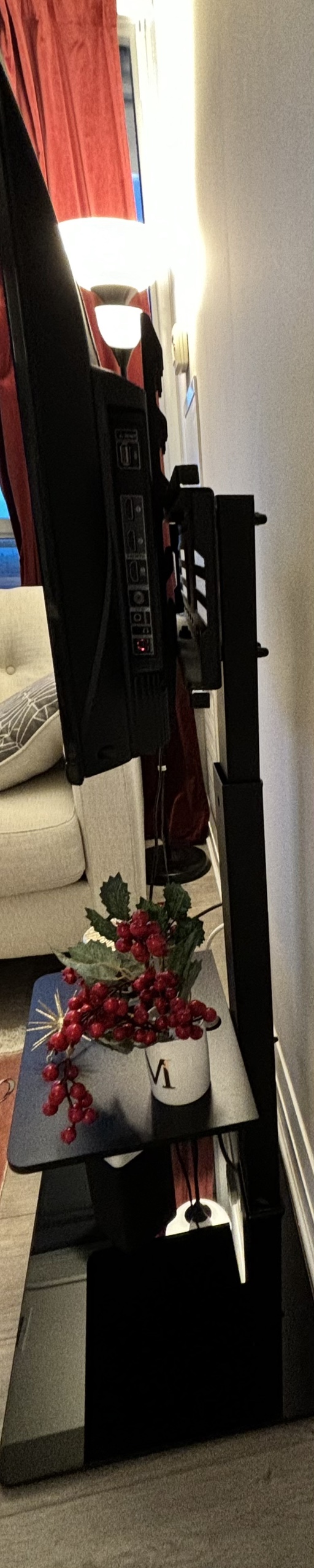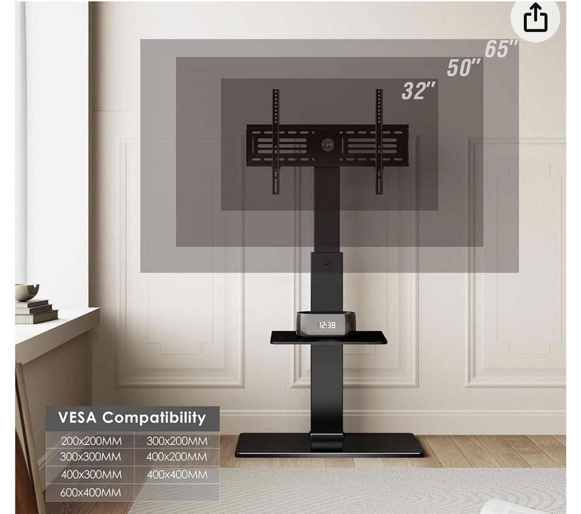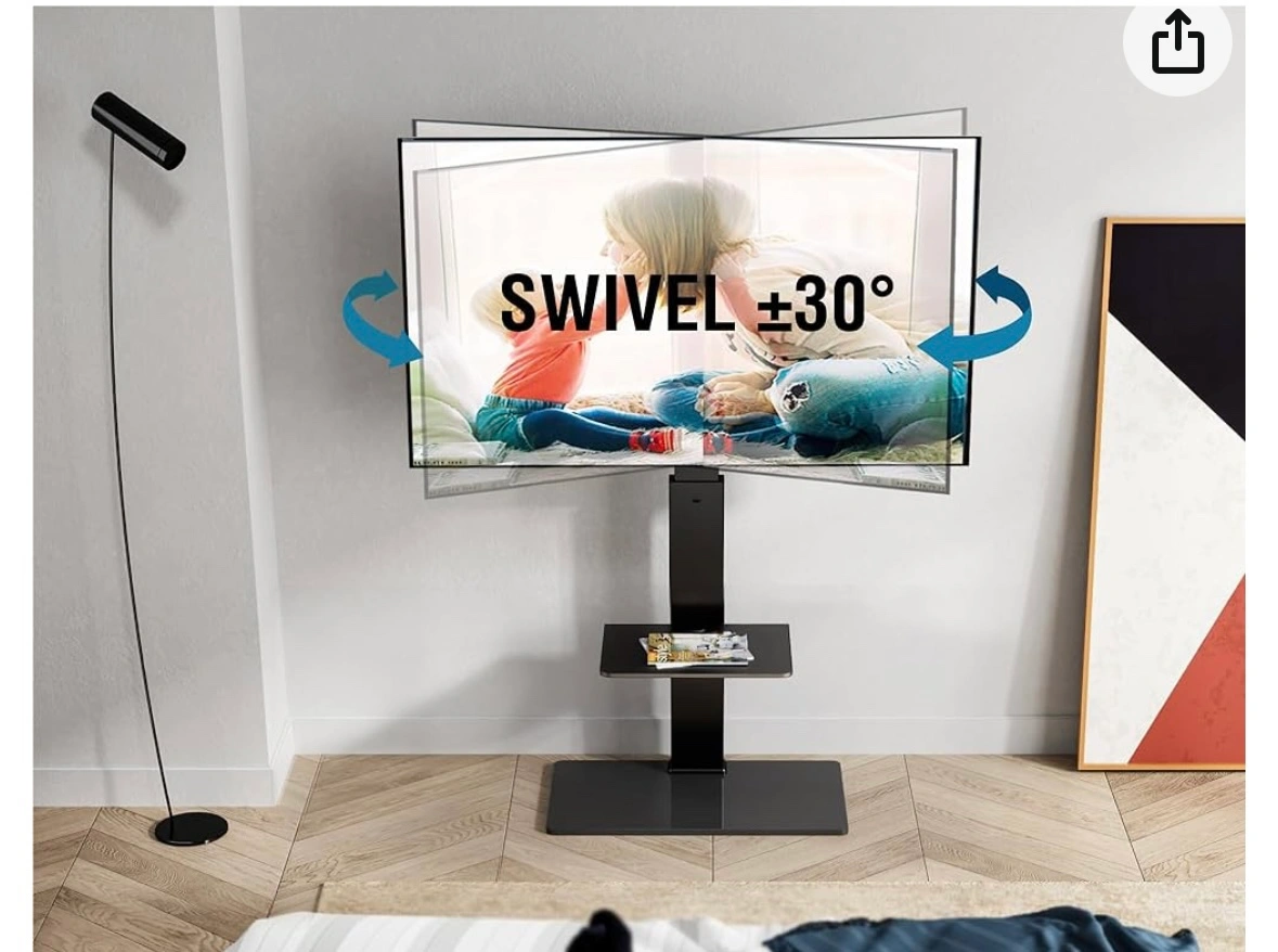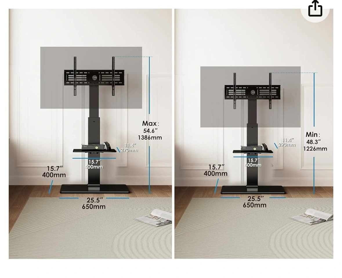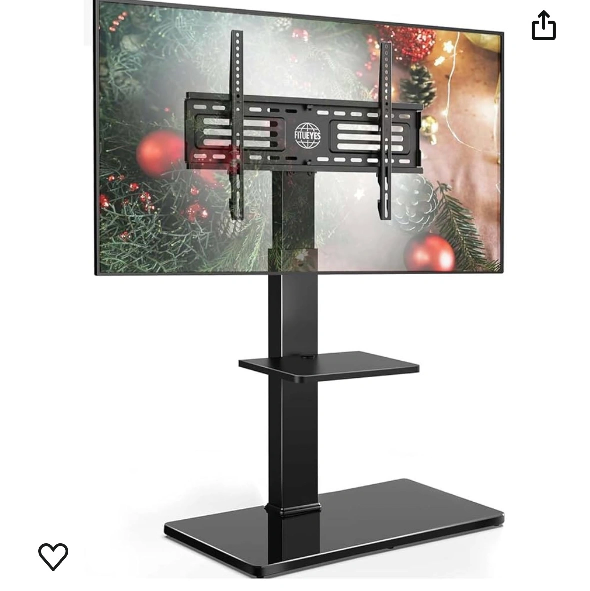 FITUEYES Floor Tall TV Stand for 32 to 65 inch Flat Curved Screen Television with 60 Degree Swivel Mount & 6 Level Height Adjustable up to 54.6" & Two Shelves.