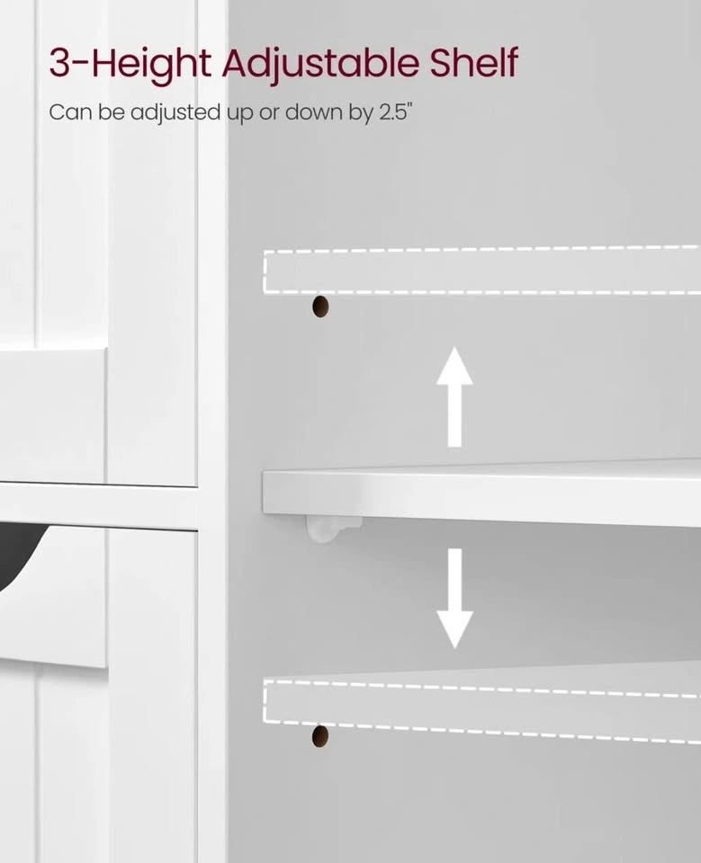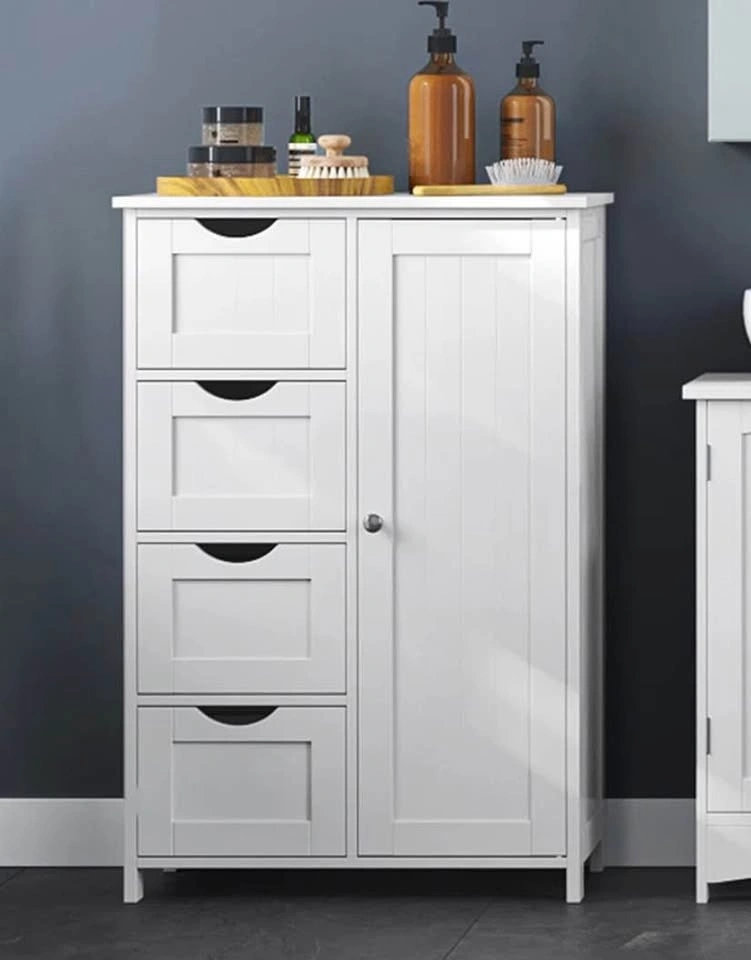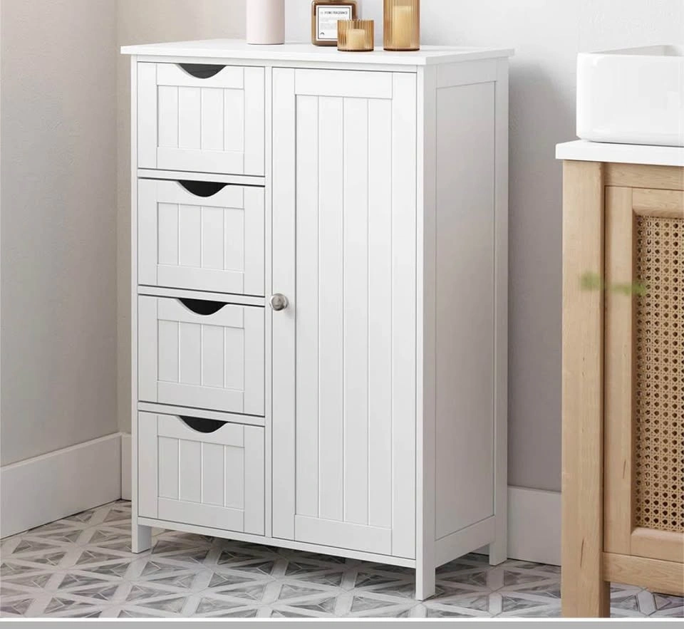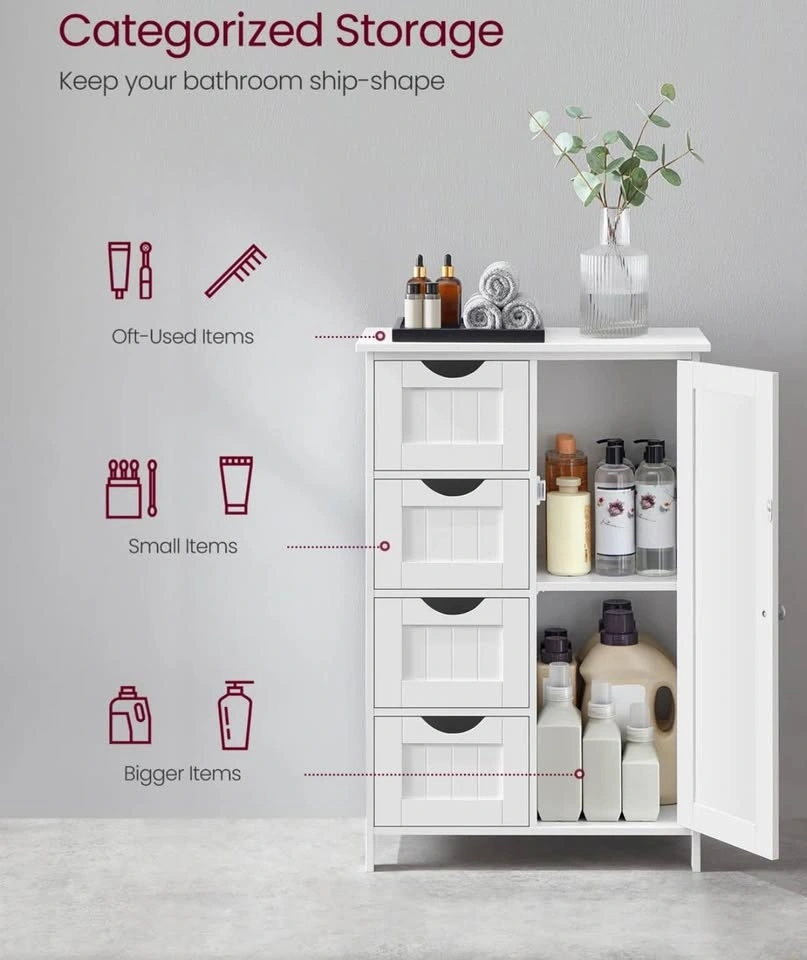 Manhattan cabinet, white storage cabinet, floor cabinet, bathroom storage, 4 drawer cabinet, adjustable shelf, freestanding cabinet, home organization, new open box.