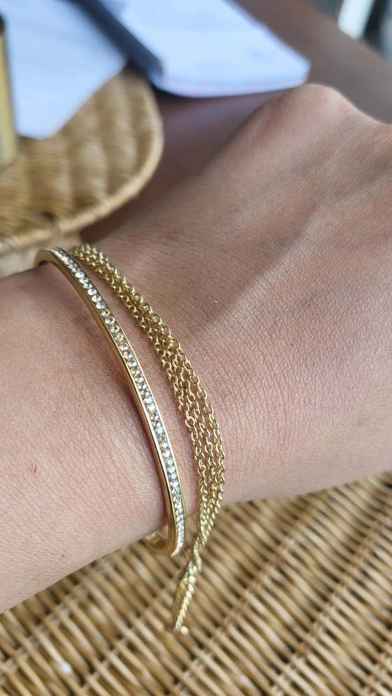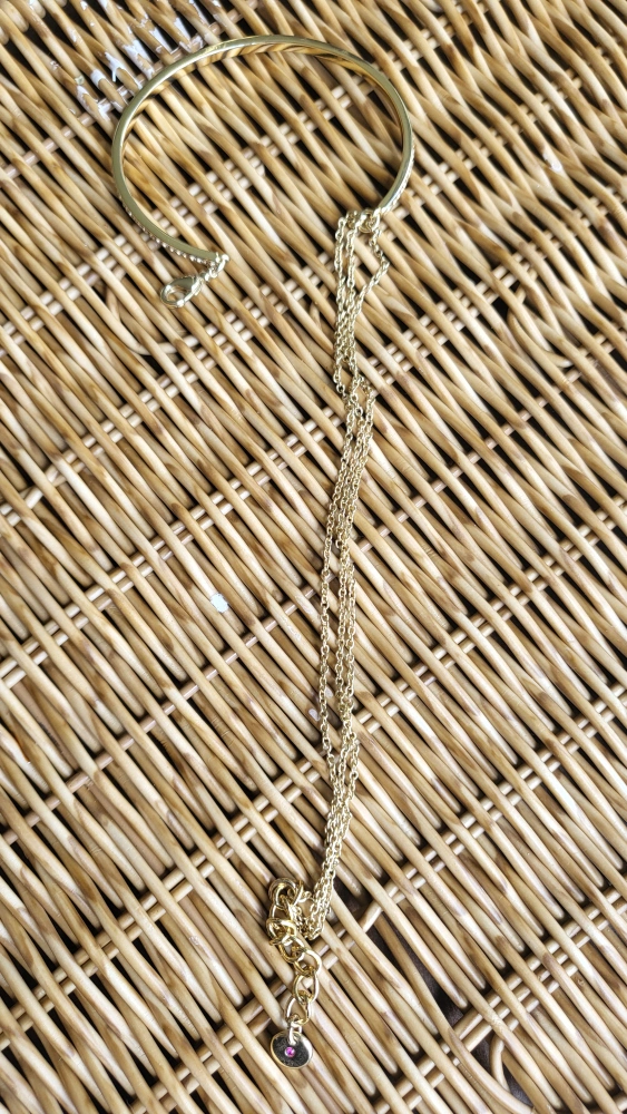 gold colored bracelet with chain, yellow crystals I believe are swarovski. bought from Europe. never ended up using it.