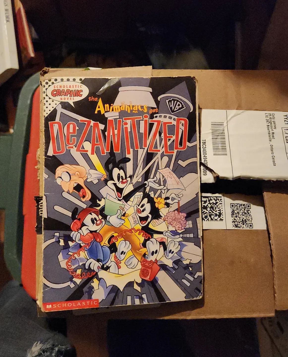 This is the Scholastic Graphic Novel 'Animaniacs Get DeZanitized!'. It's a fun read featuring the Animaniacs characters. Great for fans of the show!