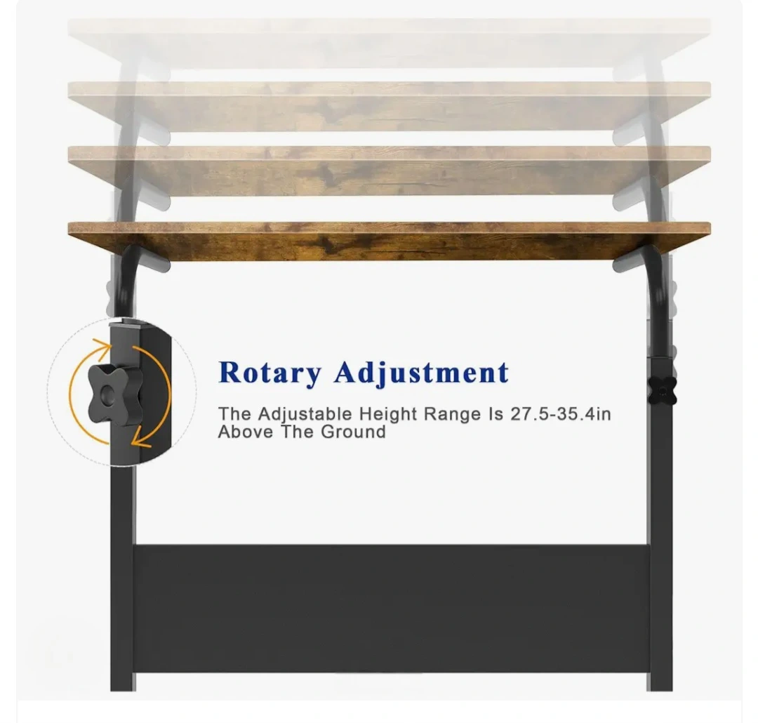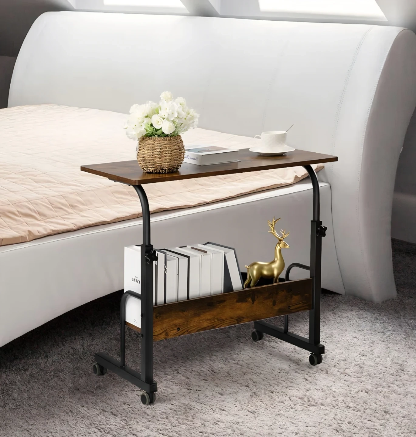 Adjustable Height Bedside Laptop Table with Storage Rack