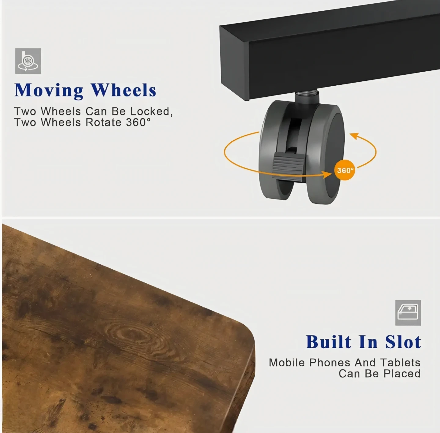 Mobile Side Table Mobile Laptop Desk Cart Tray Table Adjustable Sofa Side Bed Table (31.50", Rustic Brown) Portable Desk with Wheels Student Laptop Desk...