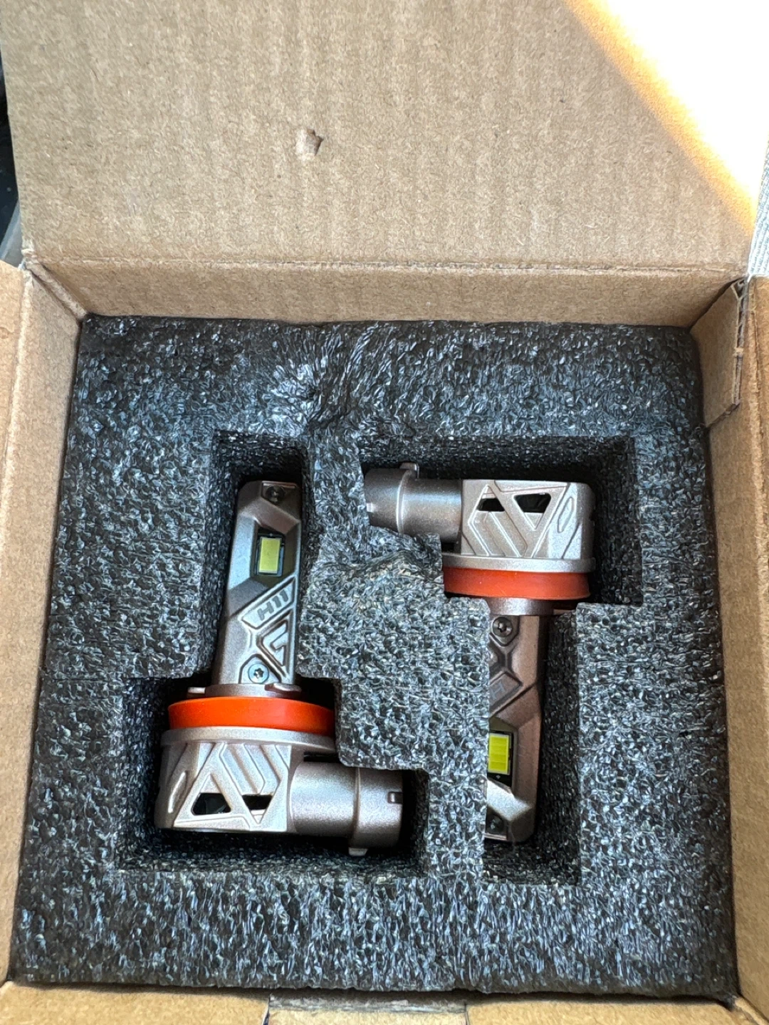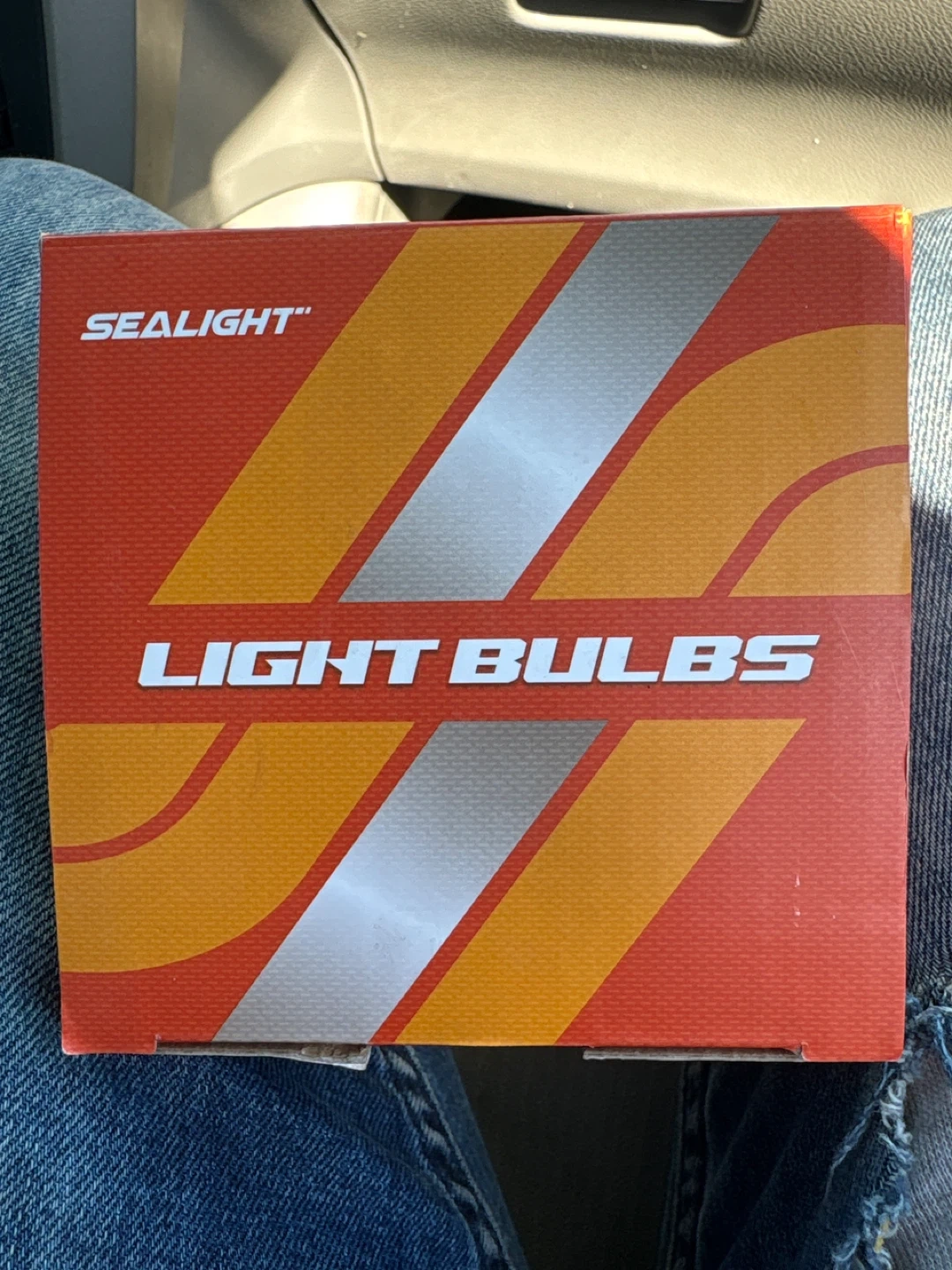 SEALIGHT brand LED light bulbs. These are a set of two bulbs, designed for automotive use. They come in their original packaging with foam protection.