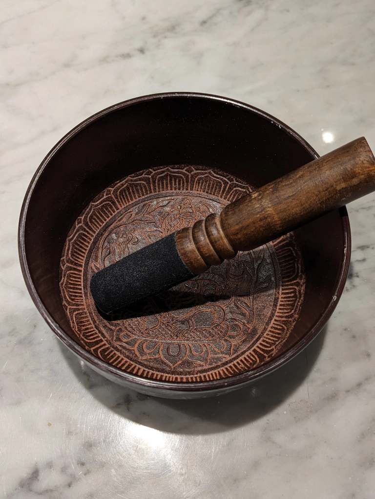 This beautiful singing bowl is ever so calming. Enjoy using it during your meditations or yoga practices. The only reason for sale is that we're downsizing prior to a move. Make me an offer!