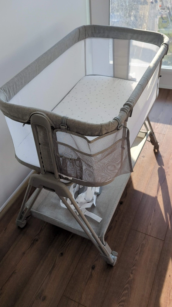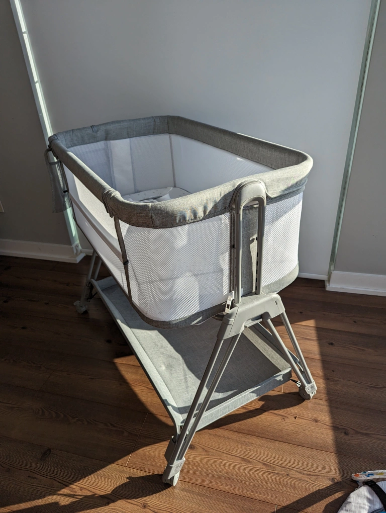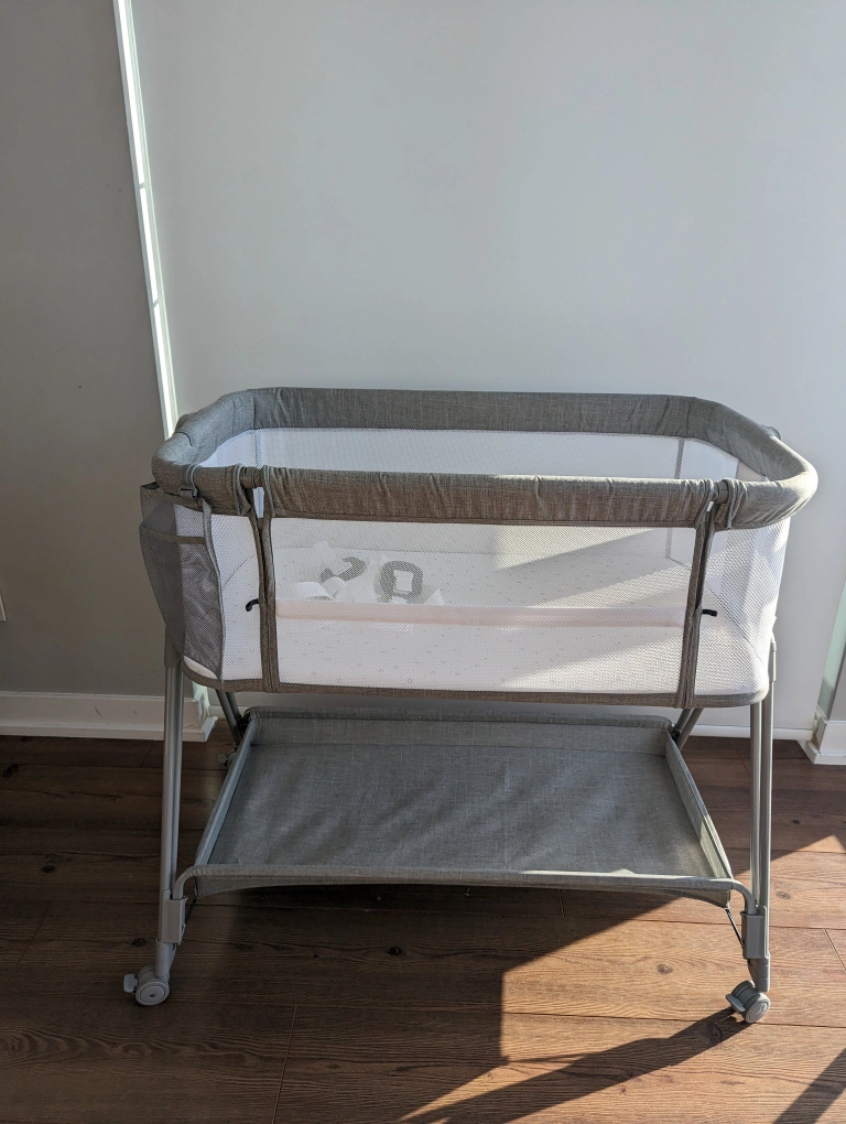 It's so convenient as it has wheels (which can lock) allowing us to easily move the bassinet from room to room. Baby was comfortable sleeping and playing in it.