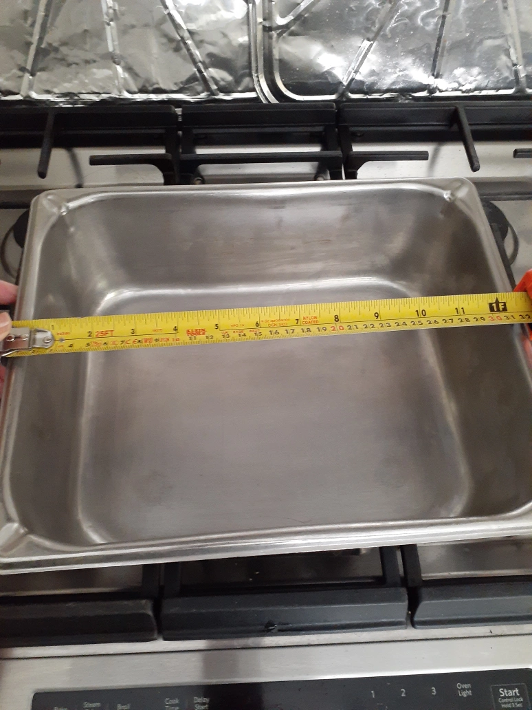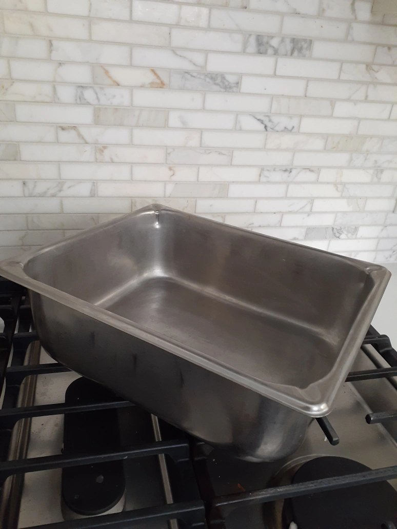 Heavy duty stainless steel construction combined with corners reinforce the strength delivers a Pan that also resists dents and dings