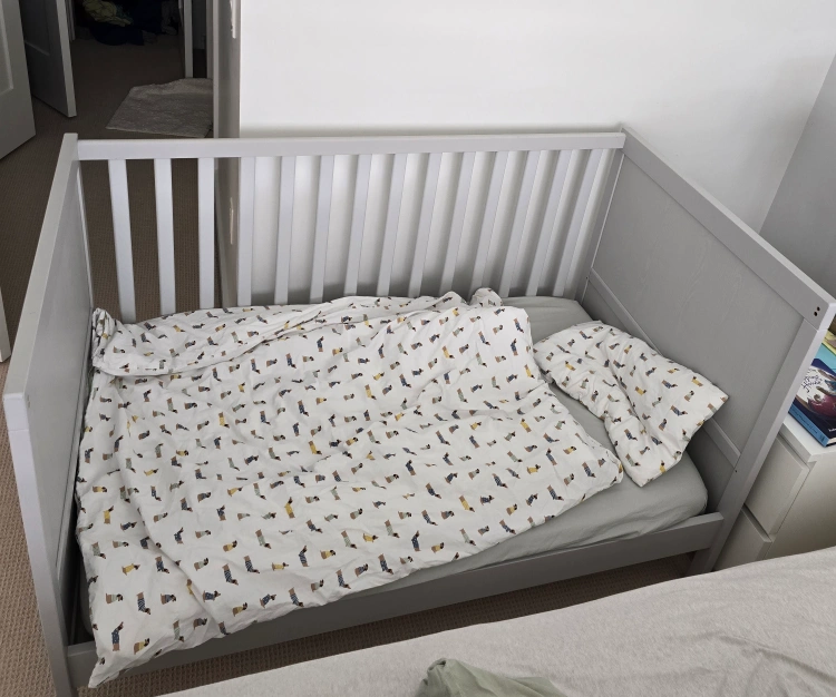 Ikea toddler bed with mattress, pillow, cover, bed sheets available.