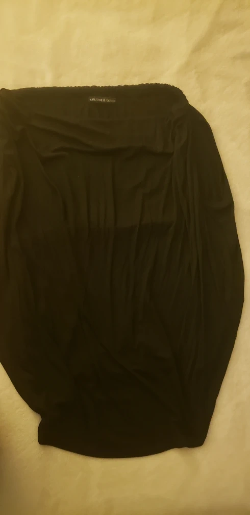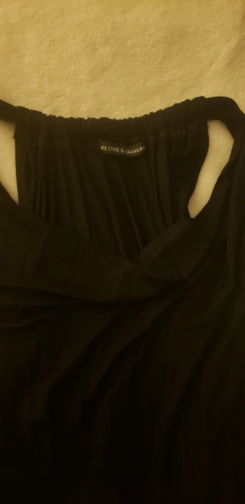 This is a very simple, but very stylish on top . Can be worn in many different kinds of ways. I have two for myself, and this one is extra. Downsizing my wardrobe. Purchased in Florida, Miami.One size fits all. I am wearing this as a dressy with long pearls necklace, or with jean jacket. I absolutely love it. You can also arrange in many different way neck line, as a boat neckline, round or v-neck and etc. Impossible to show on a photo. Super cool looking top