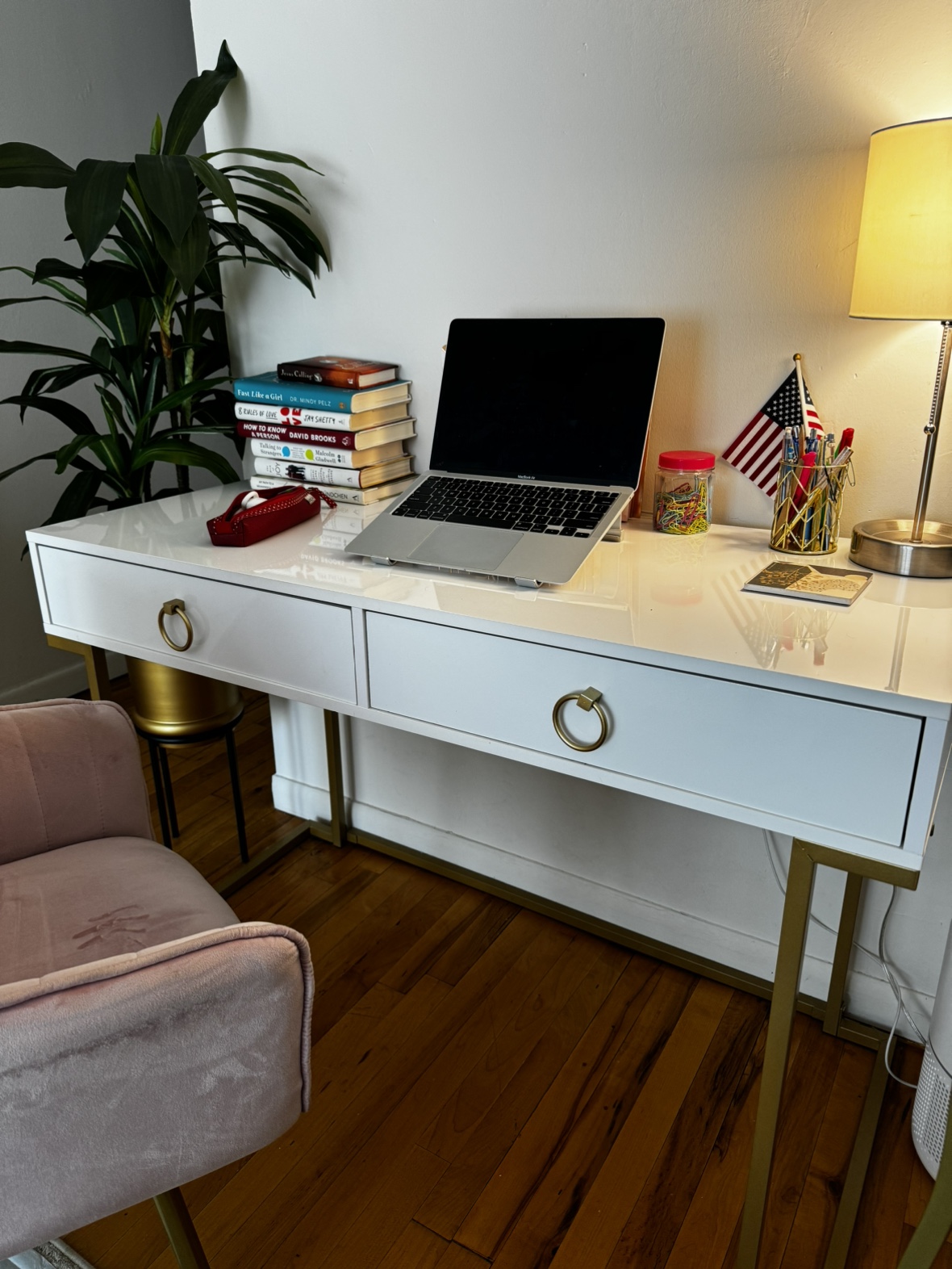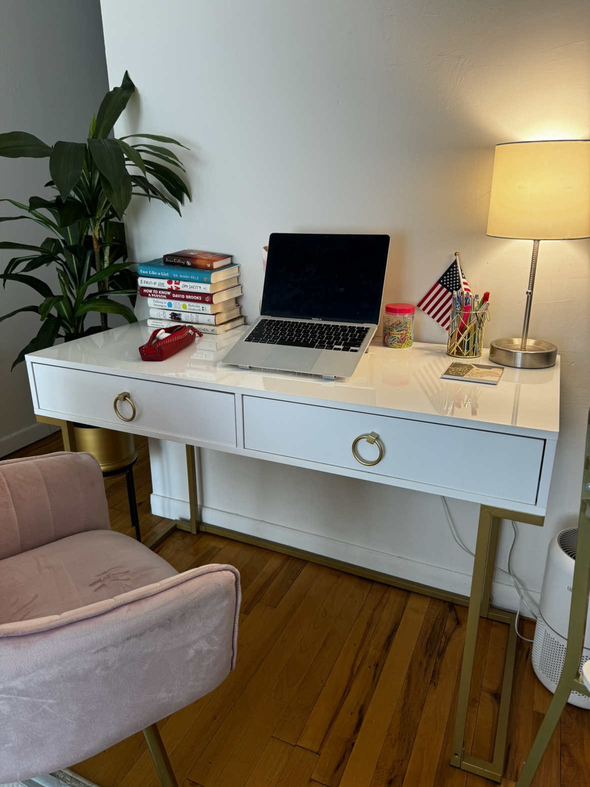1 / 51 / 5Buy & SellWhite desk tableWhite desk table$50Beautiful desk table with two drawers. Gold detail. Cash only. Pink chair on the picture it’s NOT includedConditionLike newWHERE TO MEET516 E 86thView MapSELLERFernandaYorkville665 reviews2 chats·0 favorites·115 viewsSEND CHAT TO SELLERHi Fernanda! I’m interested in your listing.Hi Fernanda! I’m interested in your listing.Get the Karrot app to chatSign In to chat