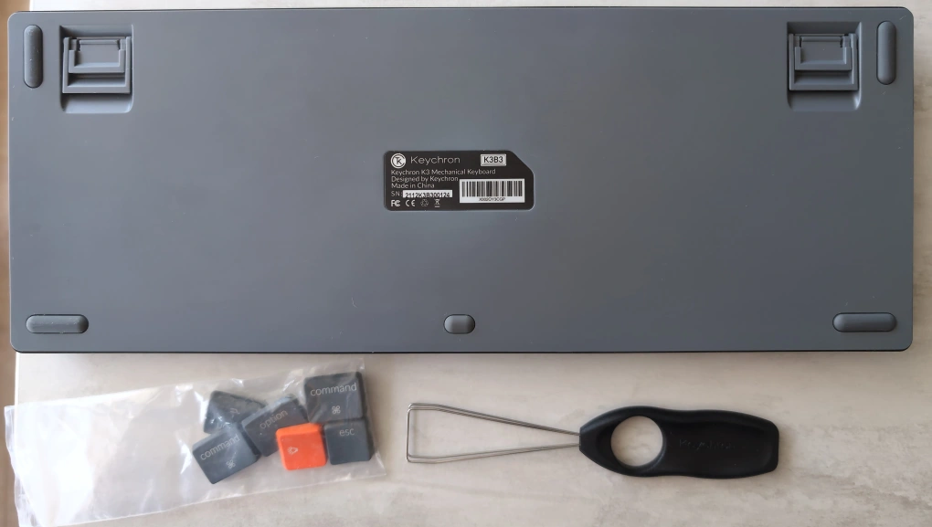 Includes USB-A charging/connection cable, keycap remover, extra keycaps.