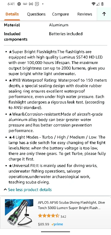amazingly bright dive torch for scuba , freediving , snorkel , boating, etc .