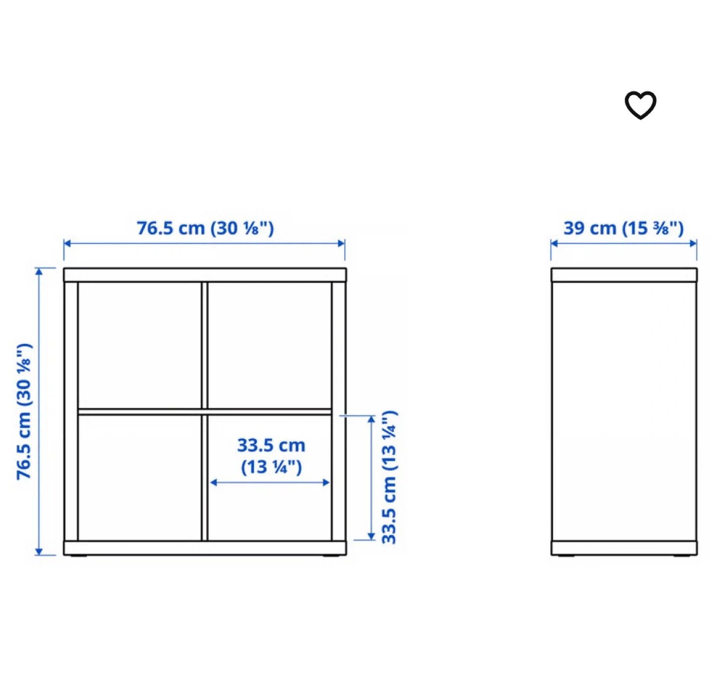 2 shelving units available. Red and white storage boxes included. Grey basket not included.