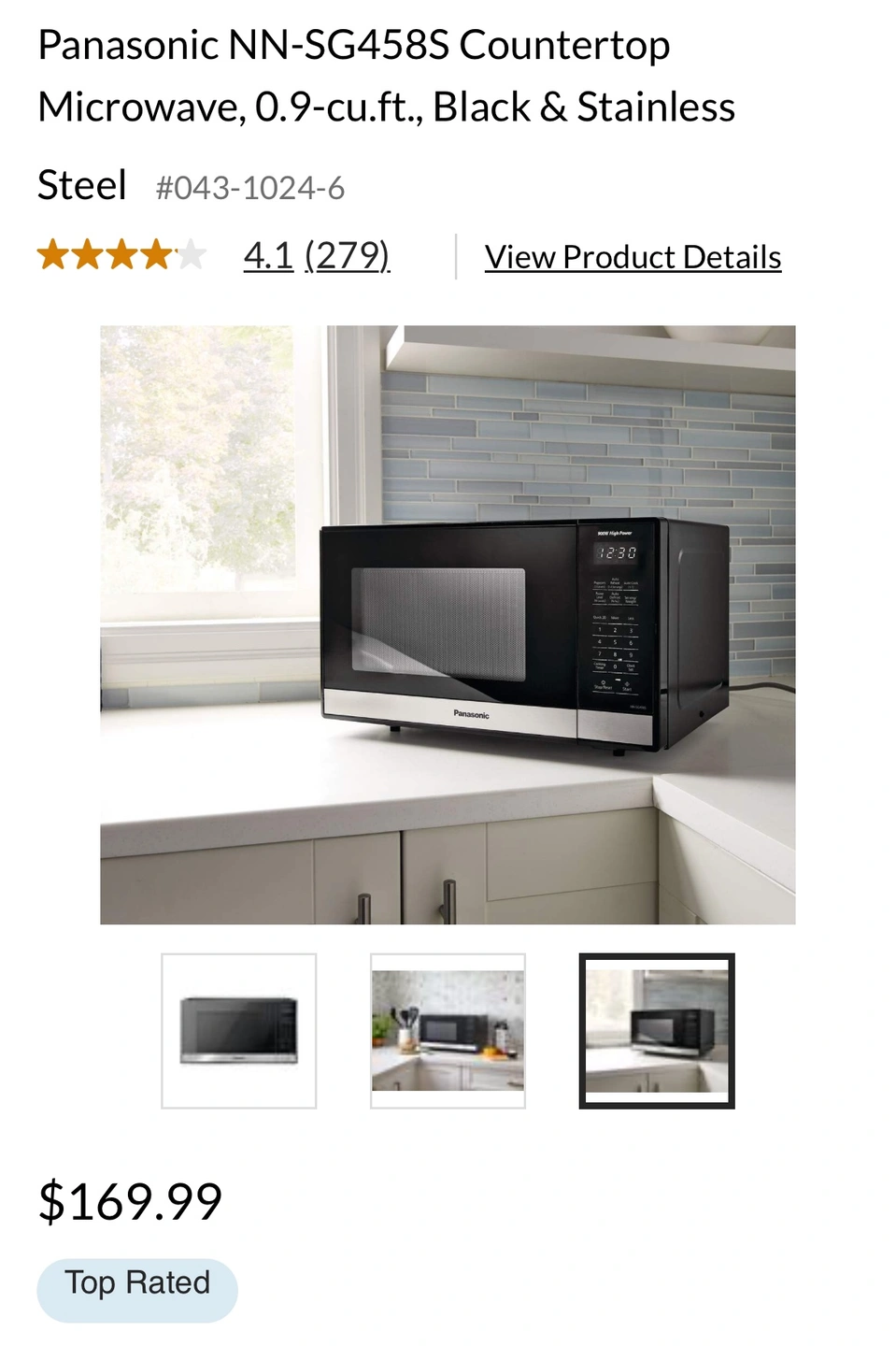 • Panasonic 0.9 cu-ft. Black & Stainless Steel Microwave is the right size for apartment and condo living
