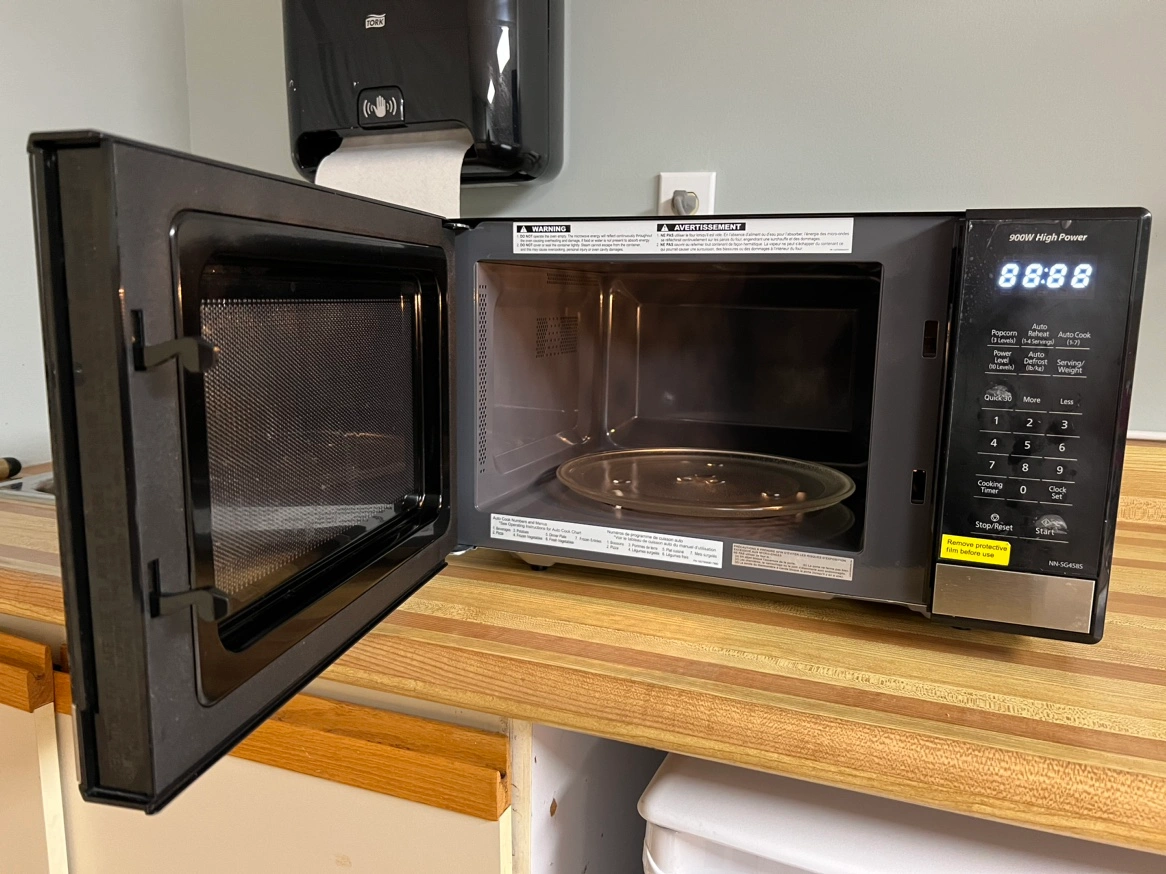 This compact Panasonic countertop microwave is perfect for apartment living. The 0.9 cubic foot interior capacity is just right for cooking meals for one or two people, while the 900 watt power heats food efficiently in minimal time.