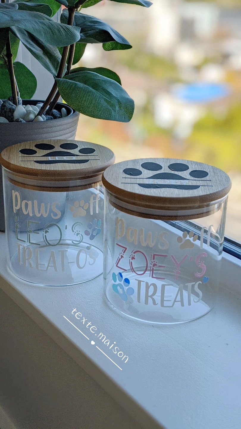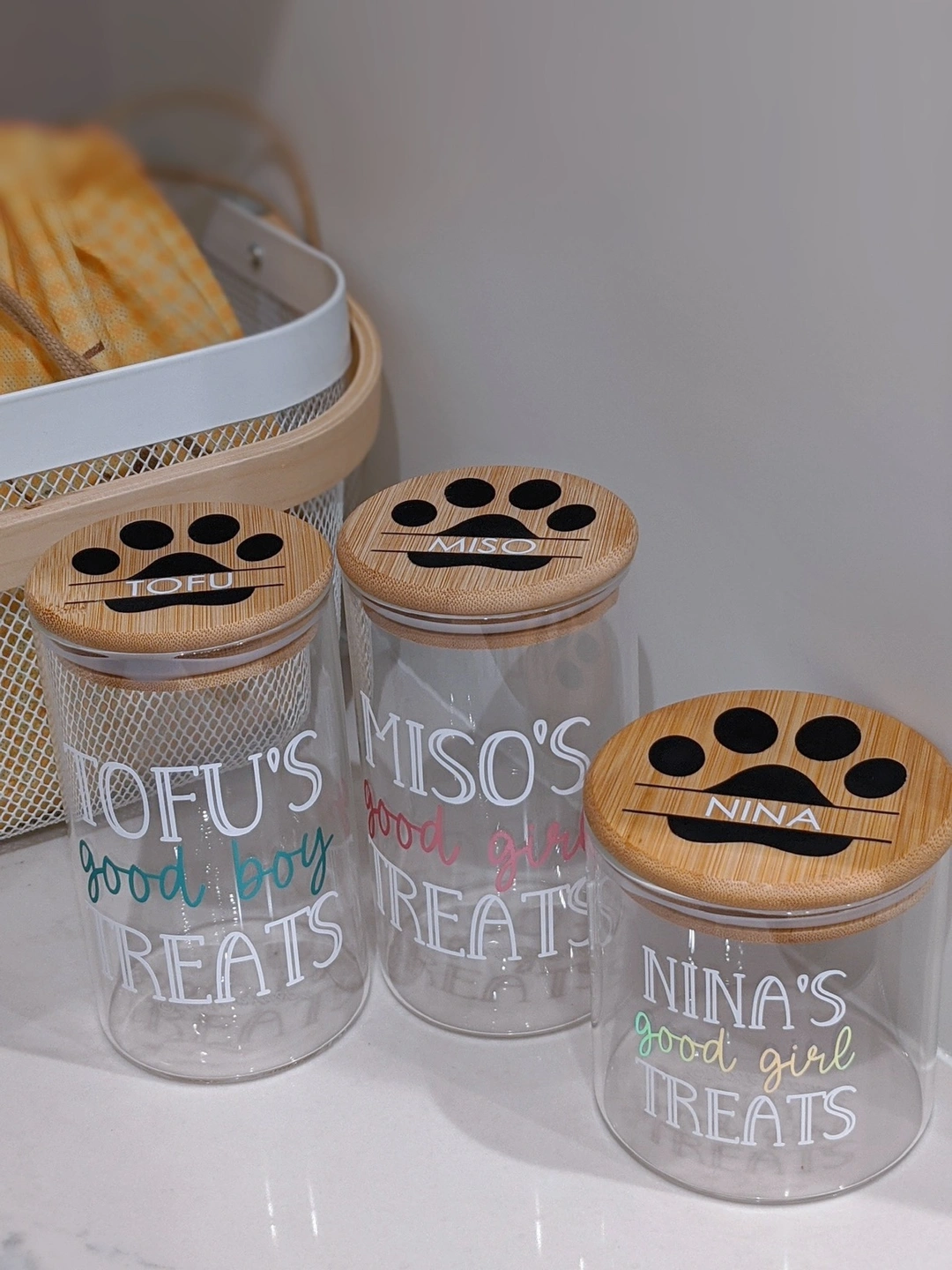 Personalize a treat jar for your furry best friend. These make great gifts for new pet owners or for pets’ birthdays!