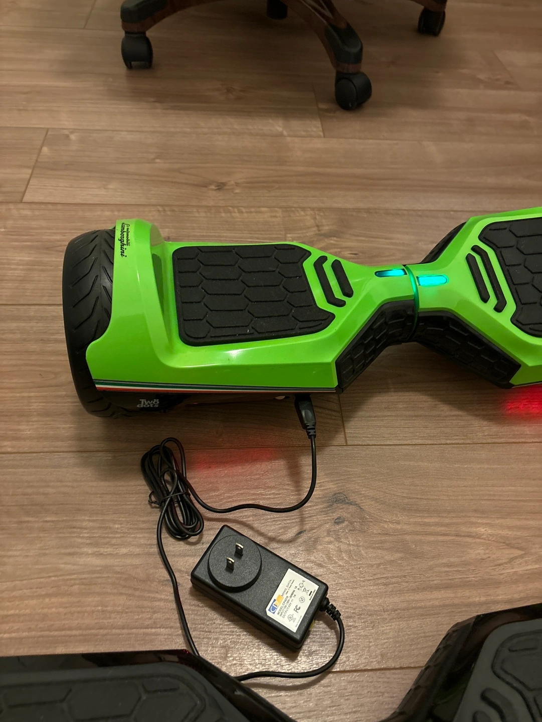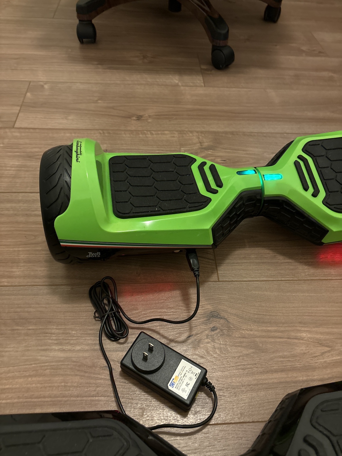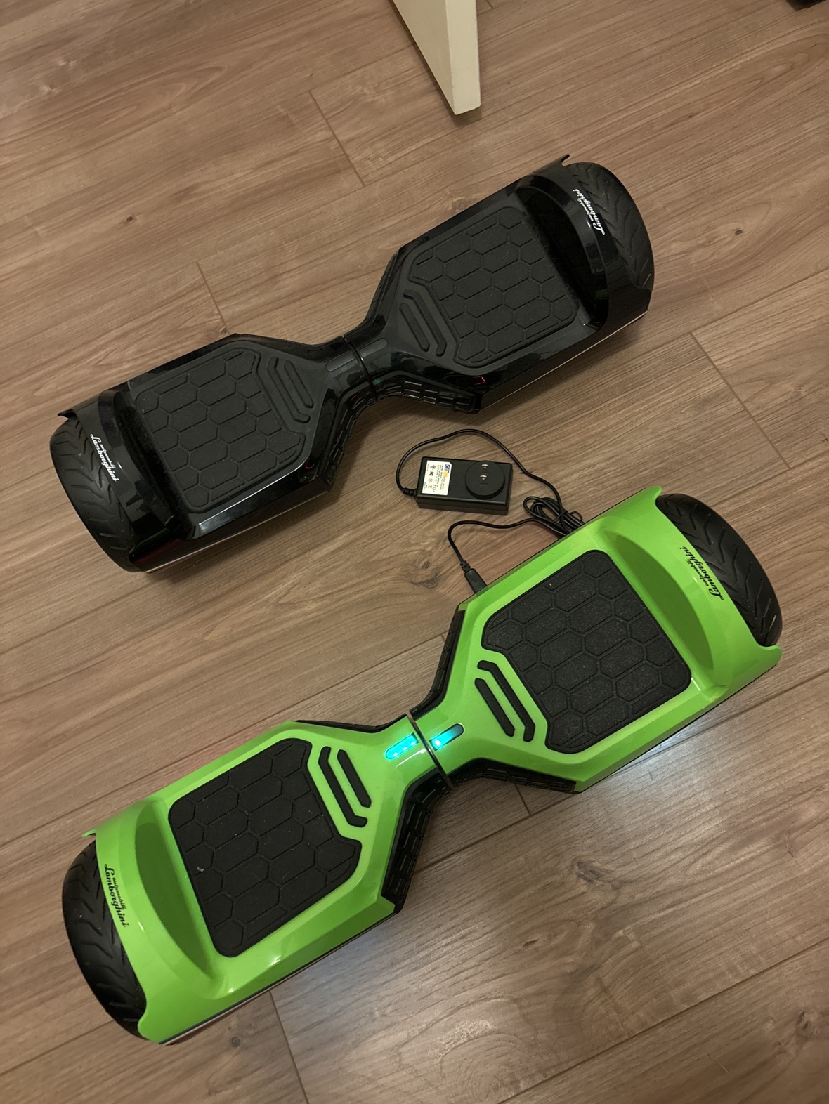 Barely used. Set of these Lamborghini hoverboards, connects to Bluetooth through phone very easily and is loud, can be used indoor or outdoor. I’ve reached up to 15km/hour in this no problem, just takes time to learn! Saves me time in my big house and this kids love it ! Charges fast and lasts for 4 hours of use off one charge! Retail Price is 260-300 USD + Tax & Shipping EACH! This price is for BOTH, I am not willing to sell them separately. Authentic real and barely used, if you’re in the market for this type of product this price can’t be beat with the quality being almost brand new.