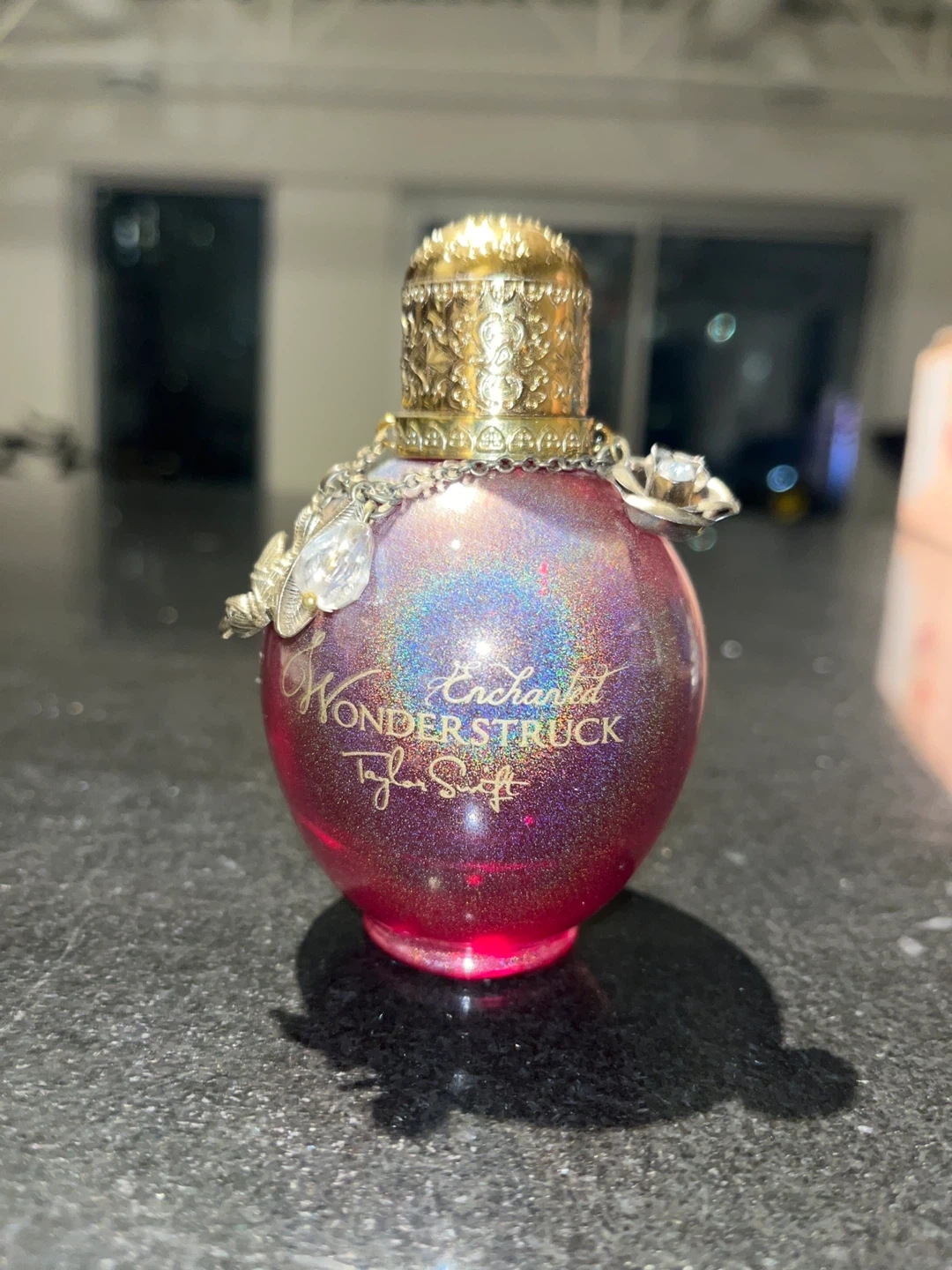 Wonderstruck Enchanted by Taylor Swift 50 ml Eau de Parfum bottle with ~40ml remaining. See photo to see how much is remaining. Vintage Taylor swift product. Beautiful iridescent bottle with charms. Eau de parfum. authentic!!!