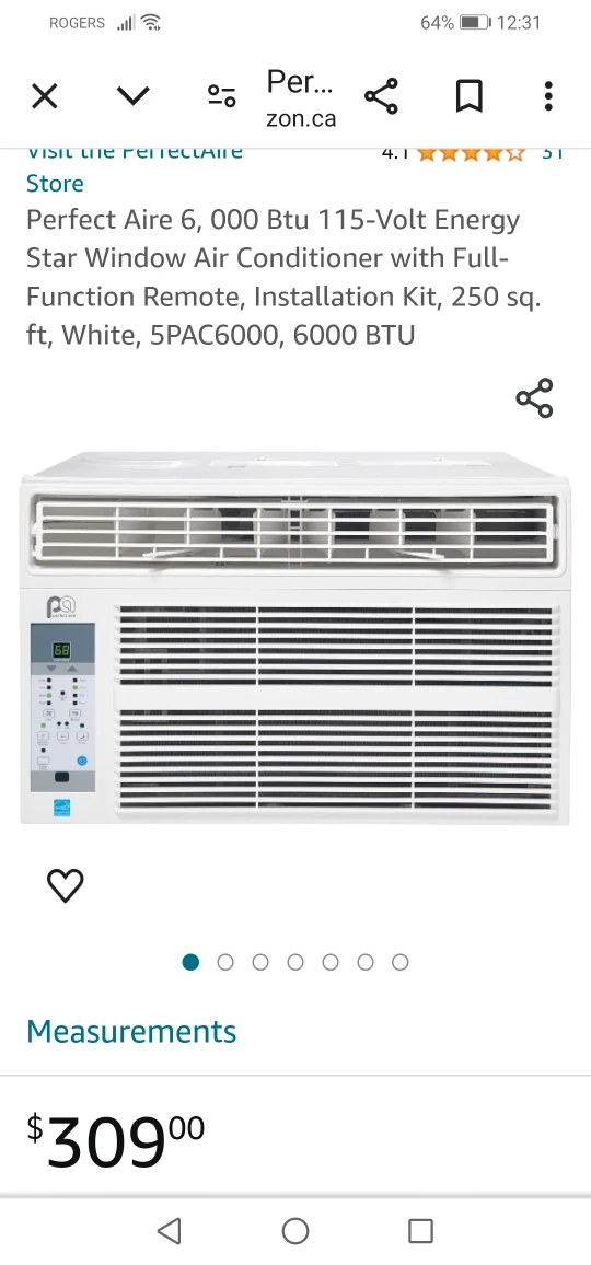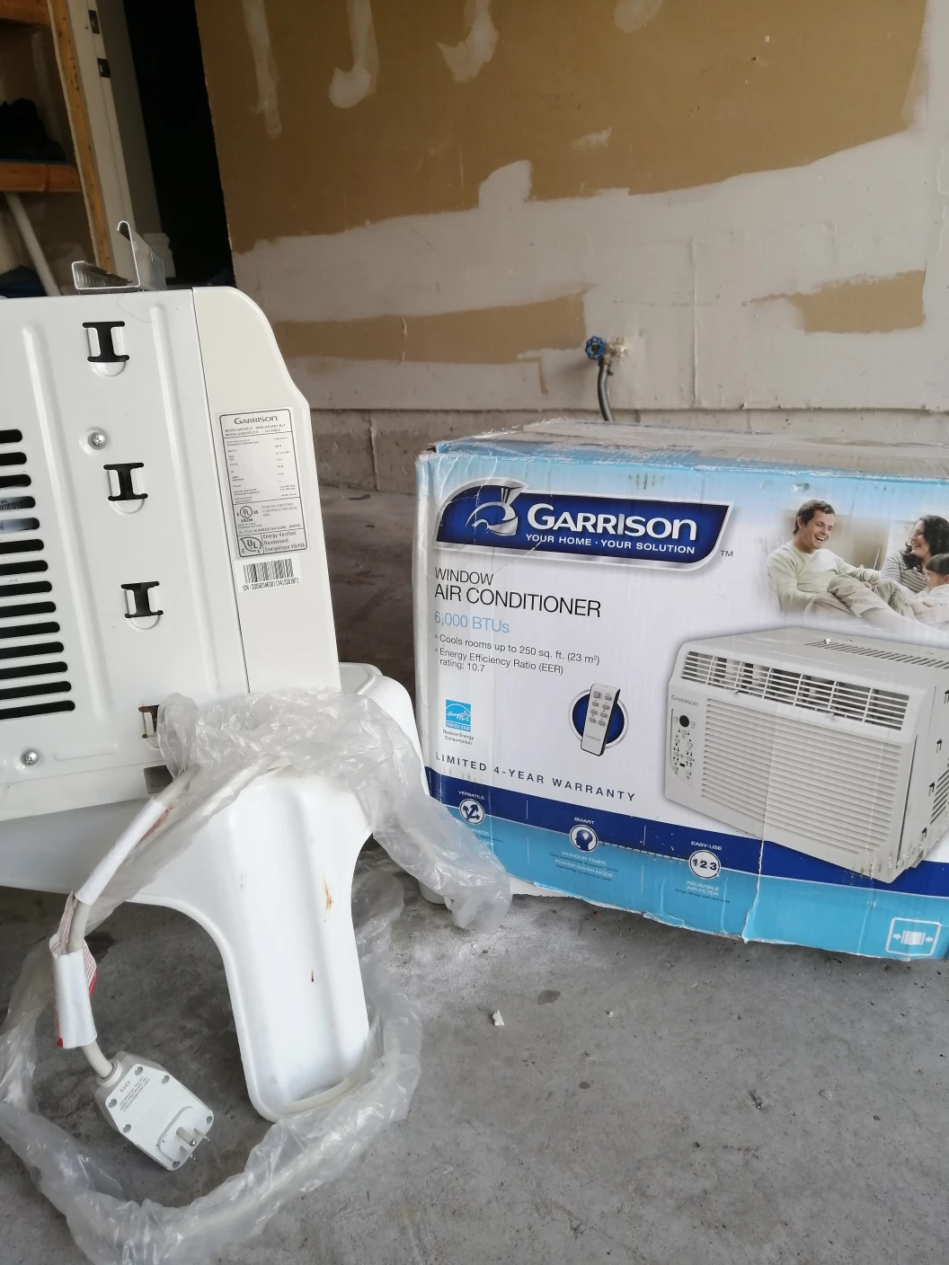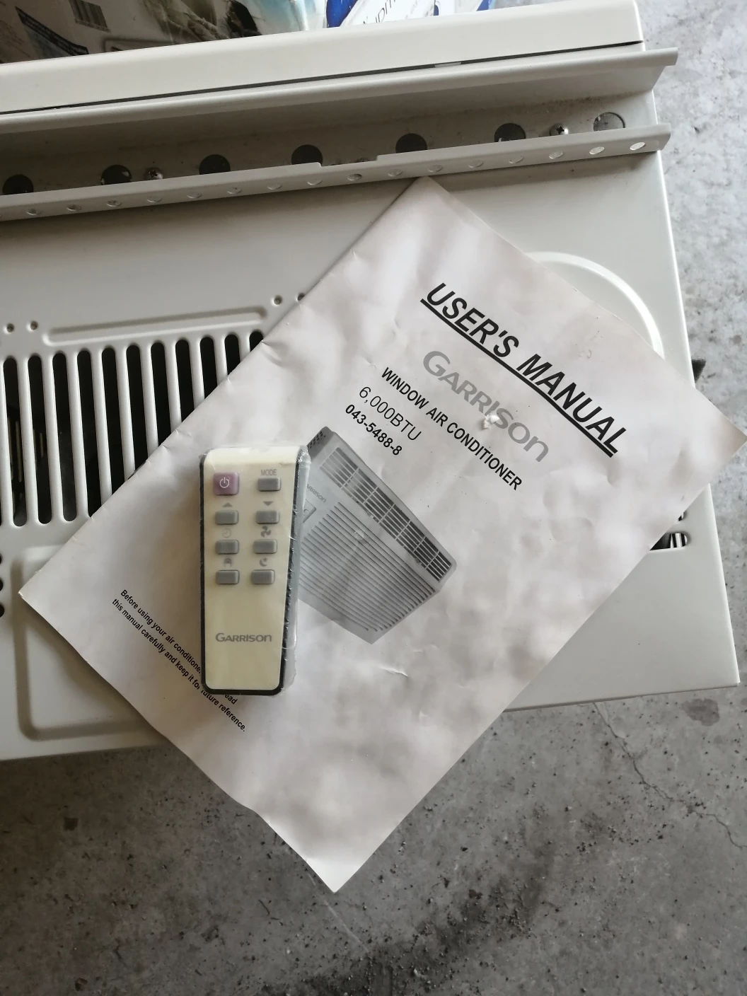 28Window AC Cooler, 6000BTU, with remote control,like New,just used a few months because moved in house,cools room up to 250 sq.ft(23 sq.m) Dimensions: Length=40.5 cm, Height=30.0 cm Depth=38.5 cm