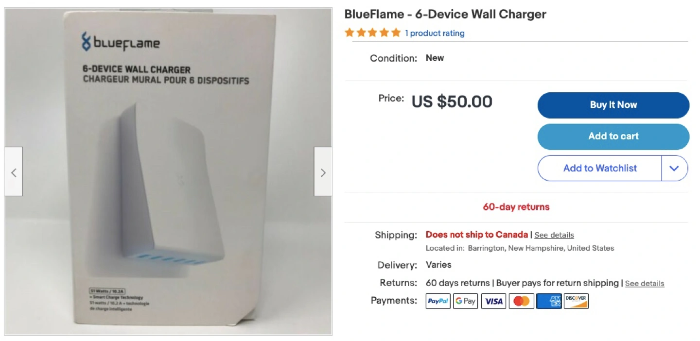 Power your devices with the BlueFlame Power Six wall charger. Charge up to six devices at once with Smart Charge technology that delivers the right power to the right appliance, including an iPhone, iPad, iPod or many other devices. Cut clutter and keep everything charged with the BlueFlame Power Six wall charger.