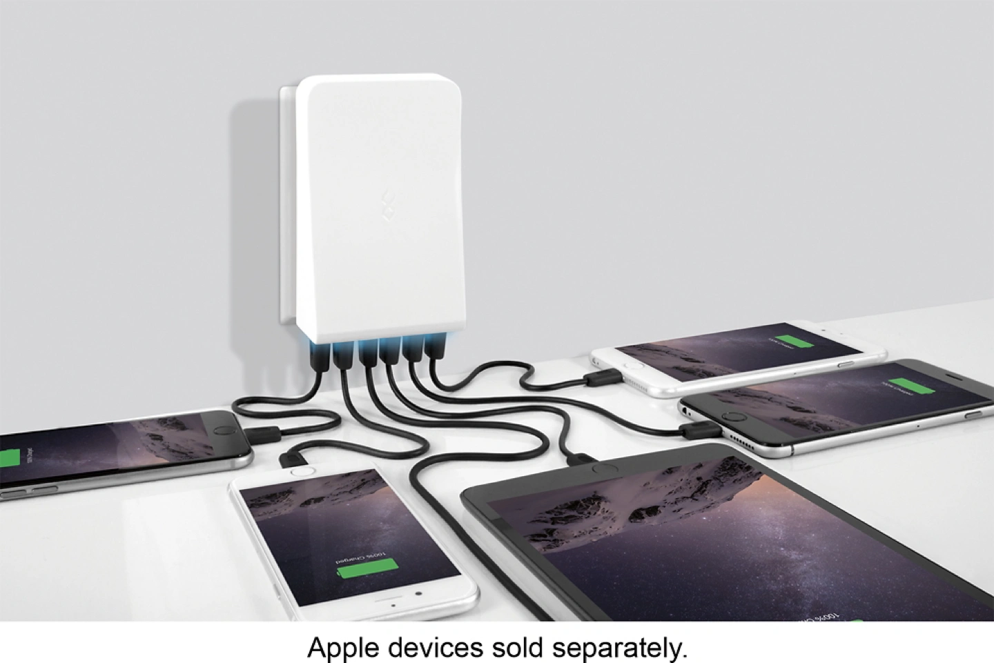 * Outlet sized, clutter-preventing design lets you neatly charge several devices at once