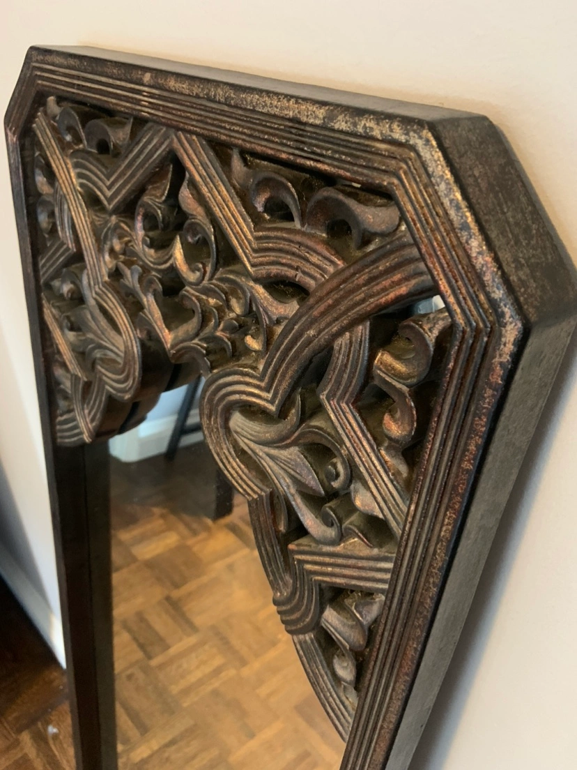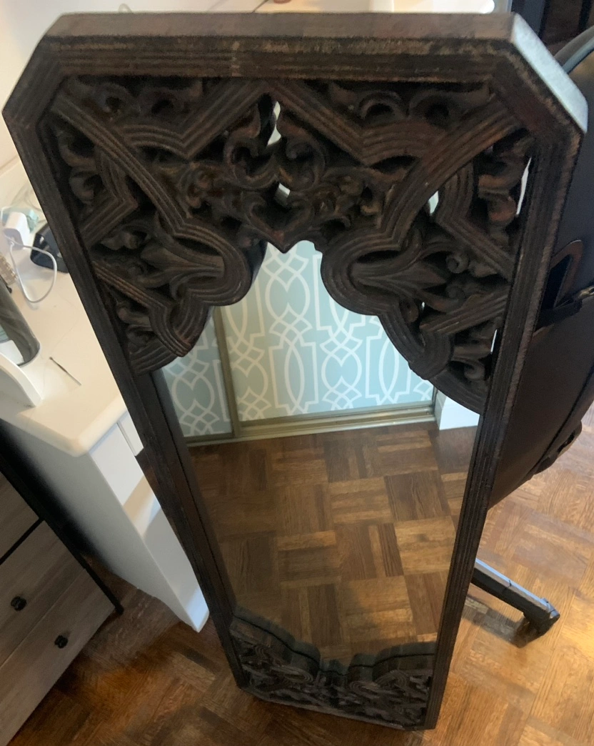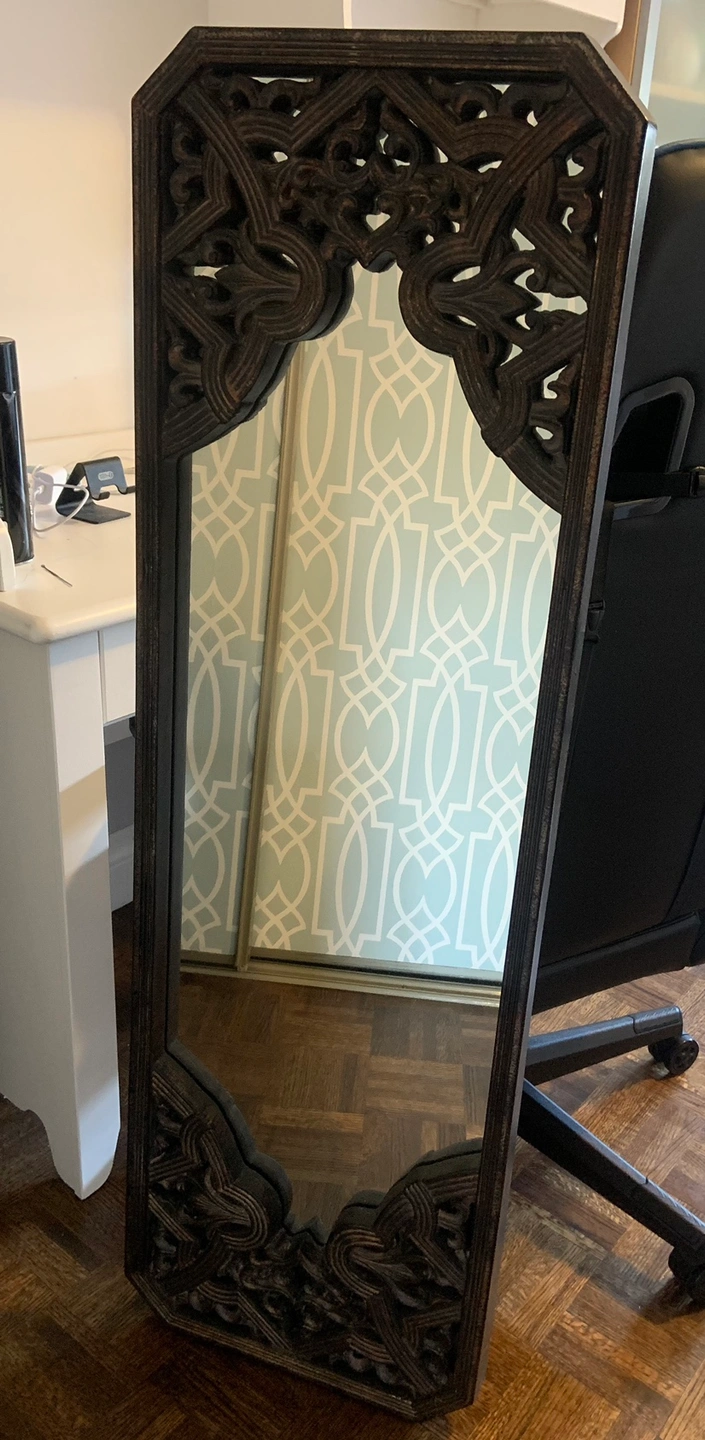 Slightly curved design to easily stand on the wall without hook, screw or nails. Has built in wall hanger hooks and wires.