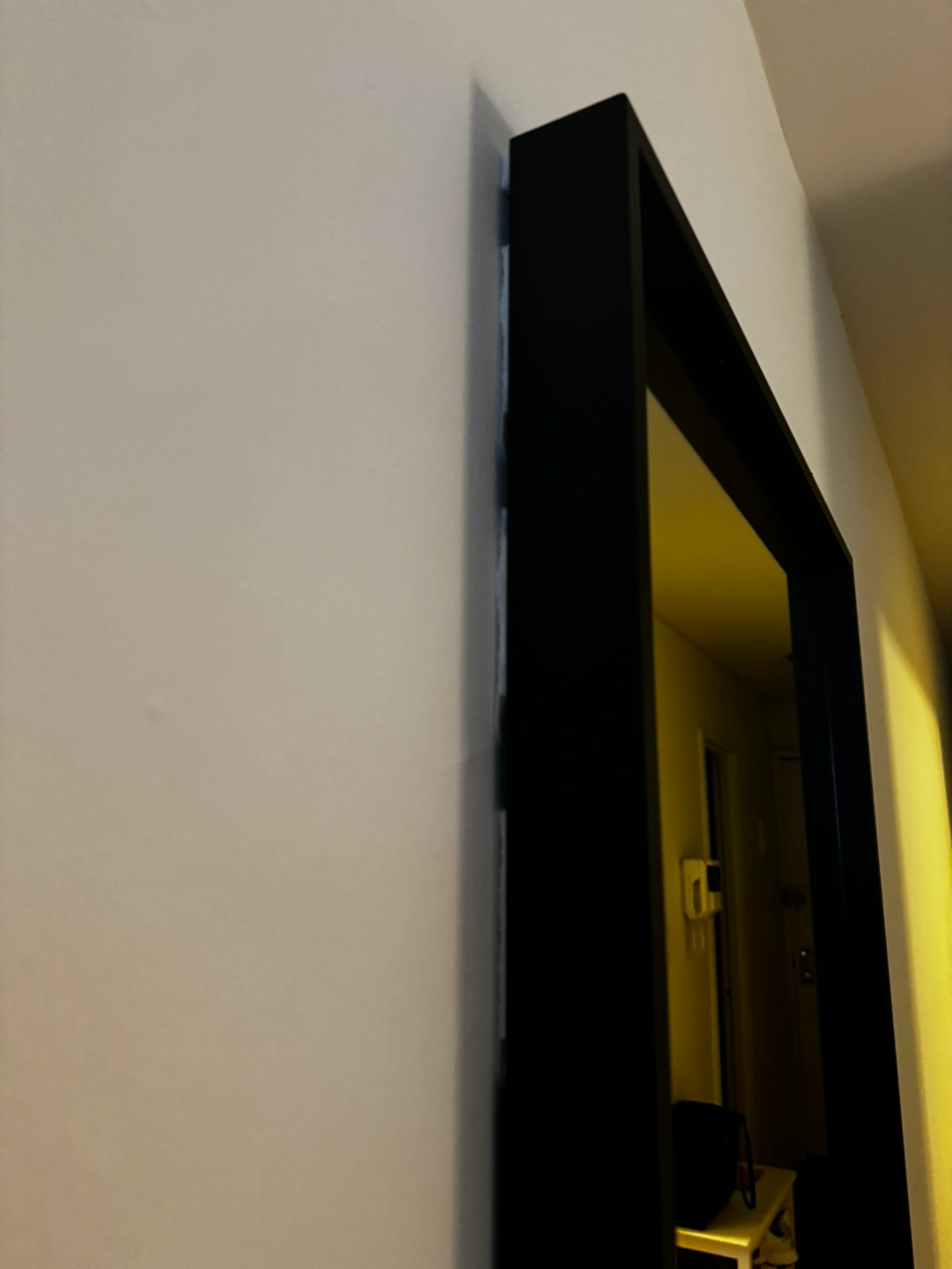 It’s light and as you can see on the picture I hold in the wall using 3M strips pads.